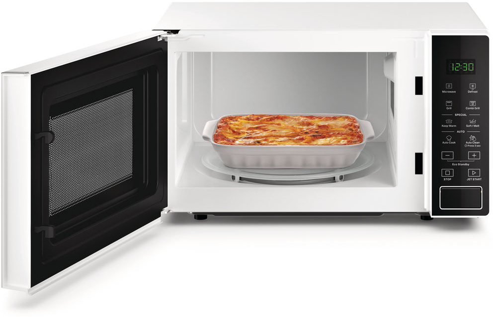 Funciones de cocción\n\nGRILL\nGrill rápido, limpieza más rápida. La potente función Grill de tu microondas te asegura los mismos deliciosos resultados que un horno tradicional.\n\nFERMENTAR MASAS\nPreparación de levadura perfecta para pan y masa con función de aumento de masa. Un programa especial para mantener estable la temperatura interna del Maxi Chef a 30 °: ideal para que la masa suba.\n\nFUNCIÓN YOGURT\nHaga que sus meriendas sean más saludables con la función YOGURT. Una función dedicada a fermentar fácilmente los yogures y aumentar las propiedades nutricionales.\n\nFUNCIÓN RECALENTAR\nRecalienta más rápidamente. Disfruta de tus comidas recalentadas en pocos minutos, gracias a la función Recalentar.\n\nMANTENER CALIENTE\nCálido confort. La función Mantener caliente en este microondas Whirlpool mantiene tu comida caliente hasta por 4 horas, evitando que se seque, para que puedas disfrutar de tu comida cuando quieras.\n\nTecnología / Características\nTecnología innovadora y funciones especiales, para ayudarte a preparar platos deliciosos, reducir el tiempo de cocción, y te ayuda a través de configuraciones automáticas.\n\nJET START\nExtraordinaria velocidad de recalentamiento. La función JetStart aumenta la temperatura en el horno hasta su máximo durante 30 segundos, ofreciendo asi la temperatura ideal para recalentar la comida con un alto contenido de agua como sopas o bebidas.\n\nGRILL DE CUARZO\nExperiencia de cocción ideal. El Grill de cuarzo recalienta y cocina tu comida más ráp.idamente que un grill tradicional. Es eficiente en recursos, reduciendo los costes energéticos.\n\nAUTO COOK\nUna gran variedad de deliciosos platos. Un mundo entero de posibilidades culinarias, especialmente seleccionadas según las diferentes necesidades de estilo de vida y opciones dietéticas: saludable, festiva, étnica, vegetariana y más.\n\nCocina saludable\nOpciones y programas para cocinar tus platos al vapo\n\nCapacidad\nLa capacidad del microondas, medida en litros.\n\nDiseño\nElementos estéticos singulares, como interfaces fáciles de usar, controles intuitivos y ergonómicos, y otras características distintivas de diseño.