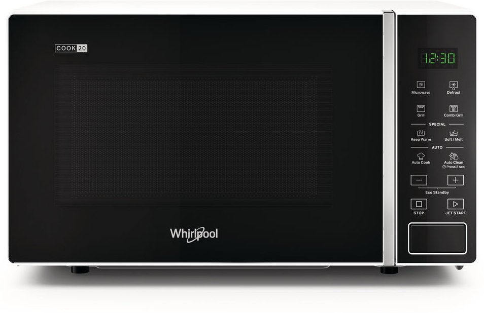 Whirlpool MWP 203 W. Tipo de instalación: Encimera, Tipo de producto: Microondas con grill, Capacidad interior: 20 L. Voltaje de entrada AC: 230-240 V, Frecuencia de entrada AC: 50 Hz, Corriente: 6 A. Ancho: 452 mm, Profundidad: 363 mm, Altura: 262 mm