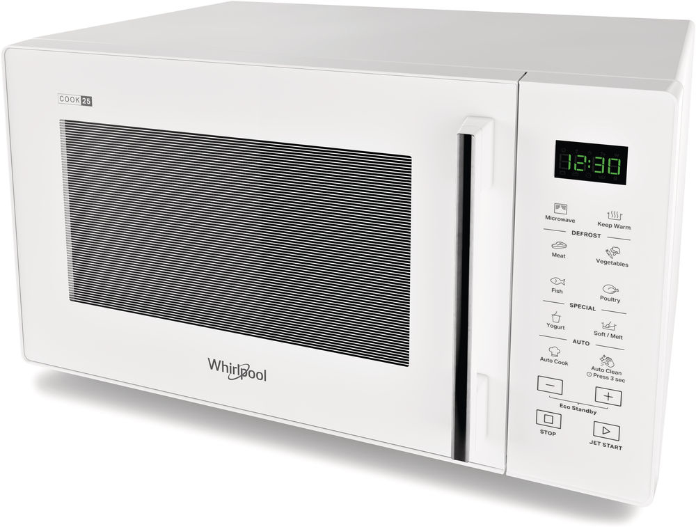 Whirlpool MWP 251 W. Tipo de instalación: Encimera, Tipo de producto: Solo microondas, Capacidad interior: 25 L. Carga conectada: 1400 W, Voltaje de entrada AC: 230 - 240 V, Frecuencia de entrada AC: 50 Hz. Ancho: 483 mm, Profundidad: 414 mm, Altura: 281 mm