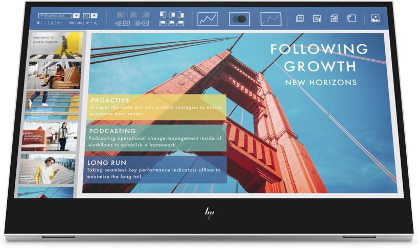 .Tamaño de la pantalla: 35,6 cm (14""),Resolución física: 1 920 x 1 080 FHD,Relación de aspecto: 16:9,Tecnología de panel: IPS,Entrada señal: 2x USB tipo CEspecificaciones: .Marca: HP . | Resolución de pantalla: 1920 x 1080 pixels . | Resolución del escáner: FHD 1080p . | Interfaz de hardware: USB-C . | color: Plata . | Consumo energético (en espera): 0,3 W . | Resolución física: 1 920 x 1 080 FHD . | Nº del fabricante: 1B065AA#ABB . | Retroiluminación: LED blanco . | Entrada señal: 2x USB tipo C . | Dimensiones del producto: largo x ancho x alto . | Ángulo visión horiz./vertic.: 178°/178° . | Espectro clase de eficiencia energética: A hasta G