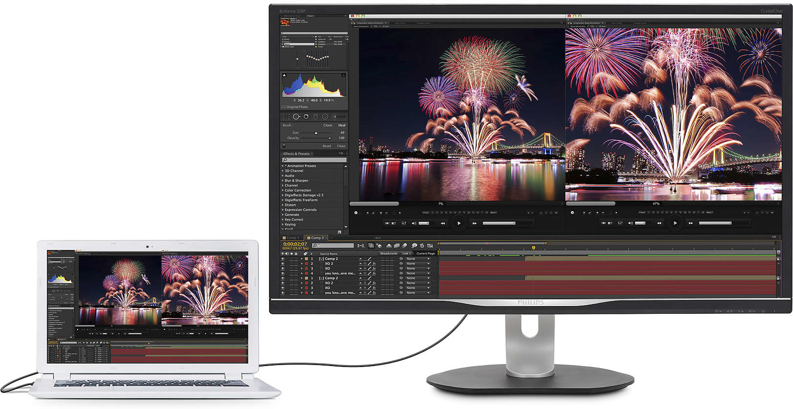 El monitor Philips Brilliance con soporte USB-C reduce el desorden de cables. Podrás disfrutar de imágenes 4K UHD vivas y nítidas, establecer una conexión segura a la intranet o cargar el portátil. Todo al mismo tiempo con un único cable USB-C.