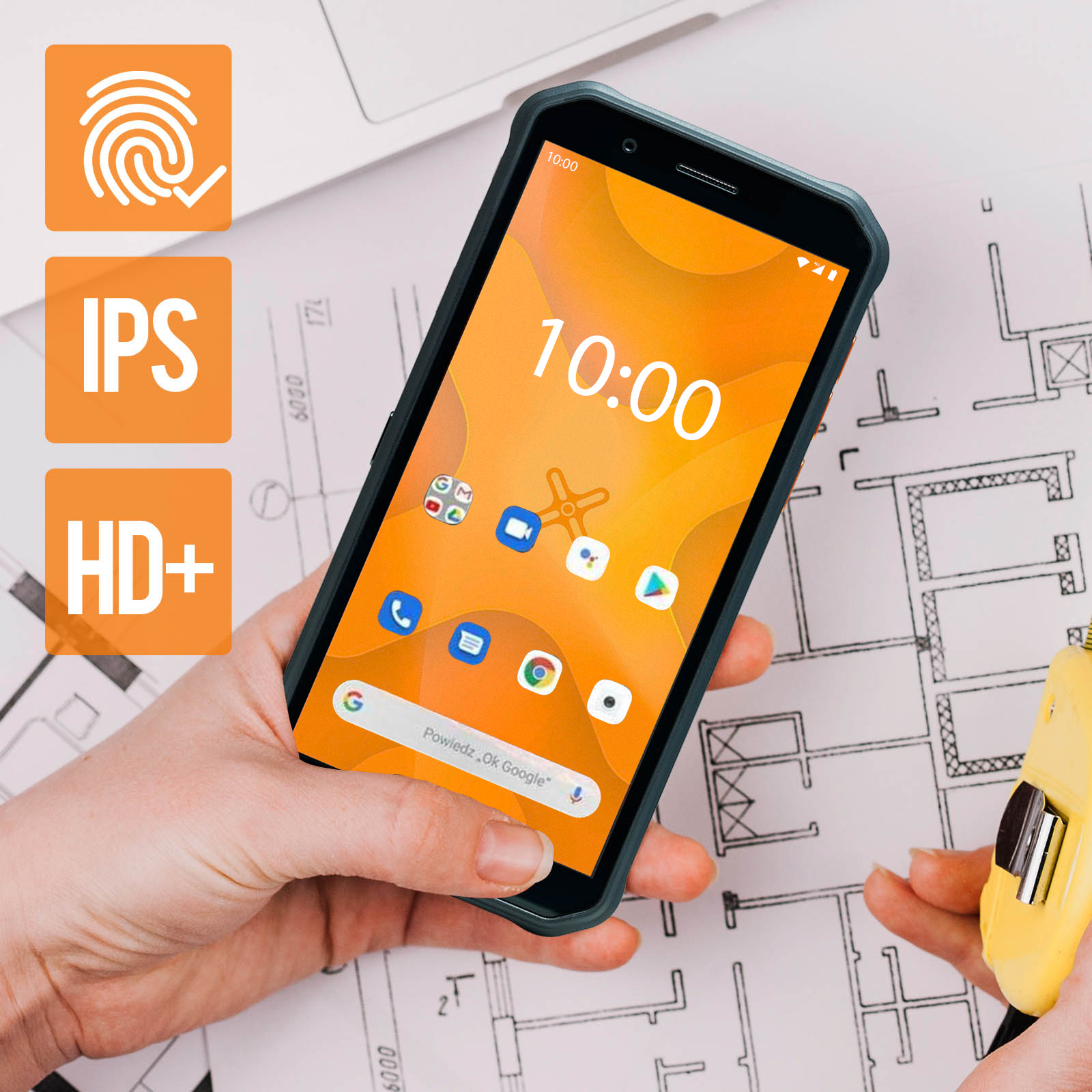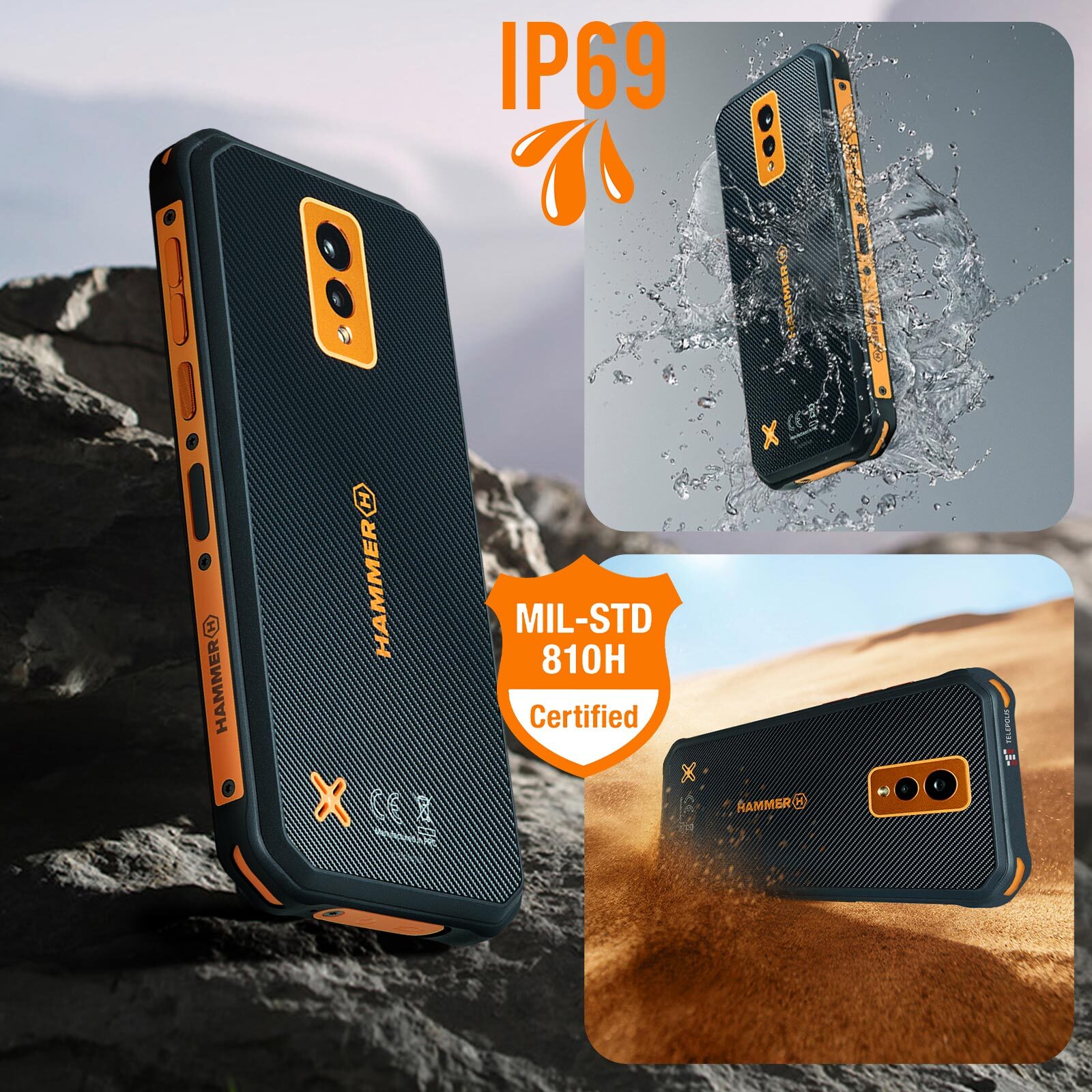 Teléfono de la serie Energy X de HAMMER. Todoterreno, es resistente al agua, a prueba de golpes y tiene certificación MIL-STD-810H. Batería de larga duración: 5000 mAh. Red 4G LTE con Android 12. eSIM + Doble compartimento nano SIM. Función Powerbank. • Características y Puntos fuertes: Descubre el versátil y enérgico smartphone de HAMMER: el HAMMER Energy X. Su resistencia a los golpes MIL-STD-810H estándar militar combinada con su grado de impermeabilidad IP69 lo convierten en un smartphone todoterreno.. Compatibilidad óptima con la red 4G LTE. Batería de 5000 mAh para hasta 2 días de uso continuo