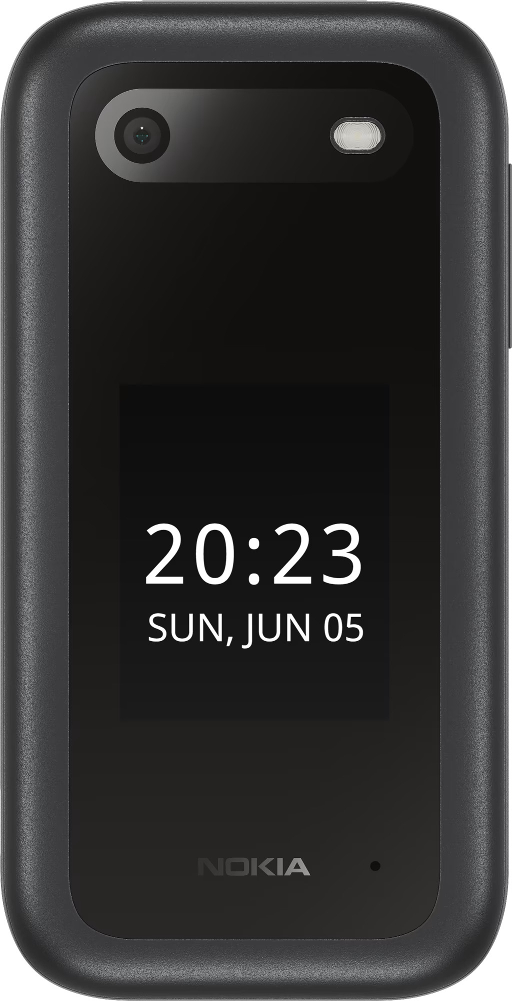 Nokia 2660 Flip. Factor de forma: Concha. Capacidad de la tarjeta SIM: SIM doble. Diagonal de la pantalla: 7,11 cm (2.8""), Pantalla externa. Resolución de la cámara trasera (numérica): 0,3 MP. Bluetooth. Radio FM. Capacidad de batería: 1450 mAh, Tiempo de suspendido (2G): 20,1 h. Peso: 123 g. Color del producto: Negro