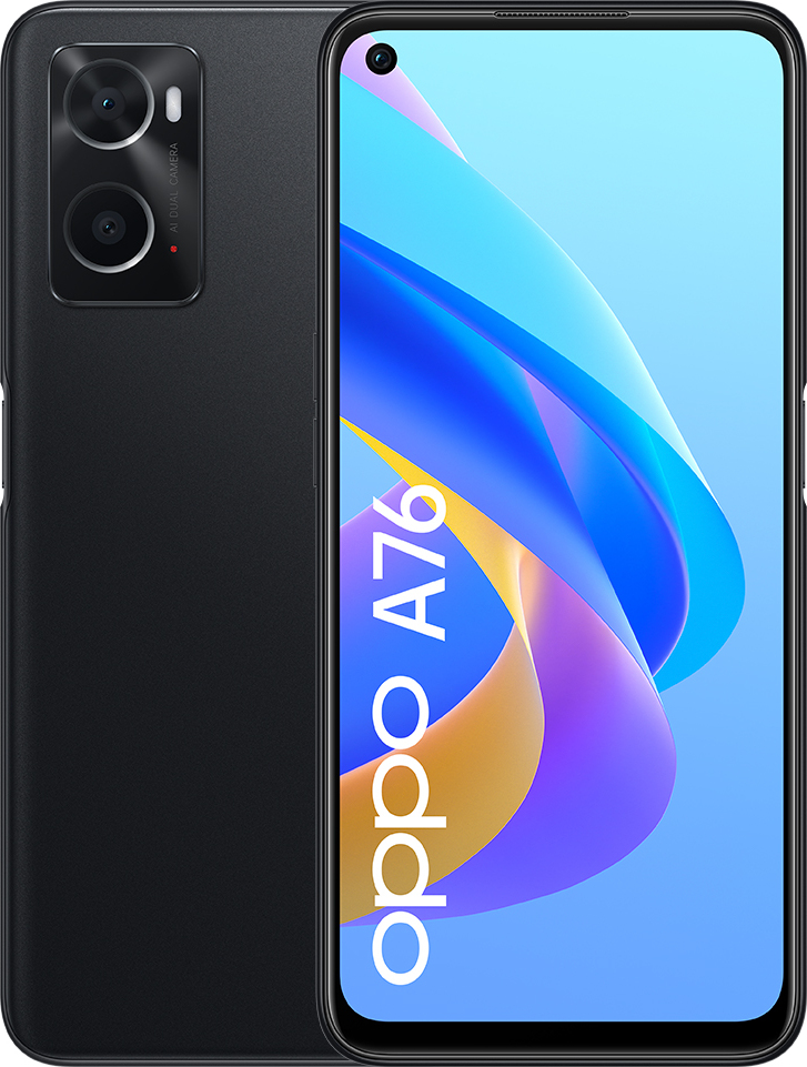 Calidad duradera de OPPO: El A76 resiste los arañazos y las salpicaduras de agua para conservar su aspecto impecable. Sea cual sea el escenario, el A76 está preparado.
