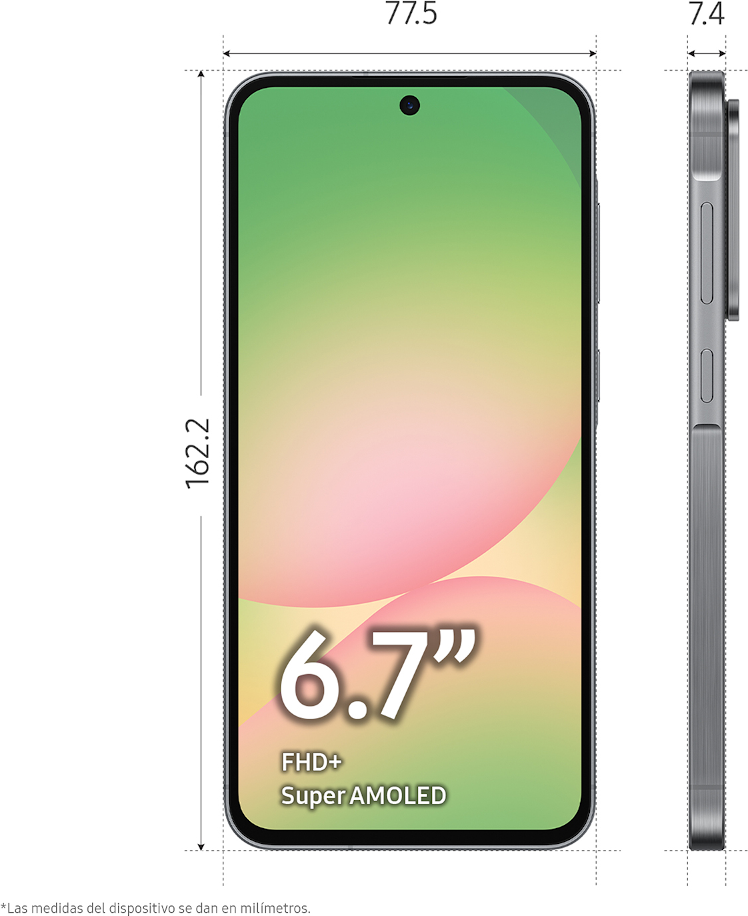 Presentamos Galaxy A56 5G. Con un grosor de 7,4 mm y un peso de 198 g, el Galaxy A56 5G tiene un gran agarre. Las cámaras mejoradas están agrupadas para combinar con el nuevo diseño linear.