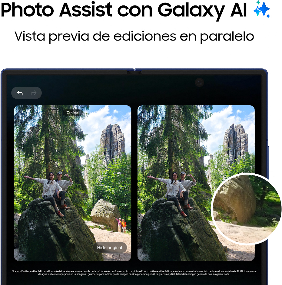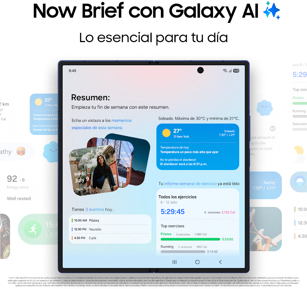 Galaxy Z Fold7 integra Galaxy AI de forma nativa para que manejes tu smartphone con la voz y gestos. Con AI Select basta un toque para obtener sugerencias contextuales, evitar menús y acelerar tu flujo de trabajo. Gemini entiende tu lenguaje natural, ya sea por texto o dictado visual, y responde preguntas o ejecuta acciones en tiempo real. Además, los asistentes específicos de dibujo, escritura, notas y fotografía elevan tu creatividad a otro nivel.