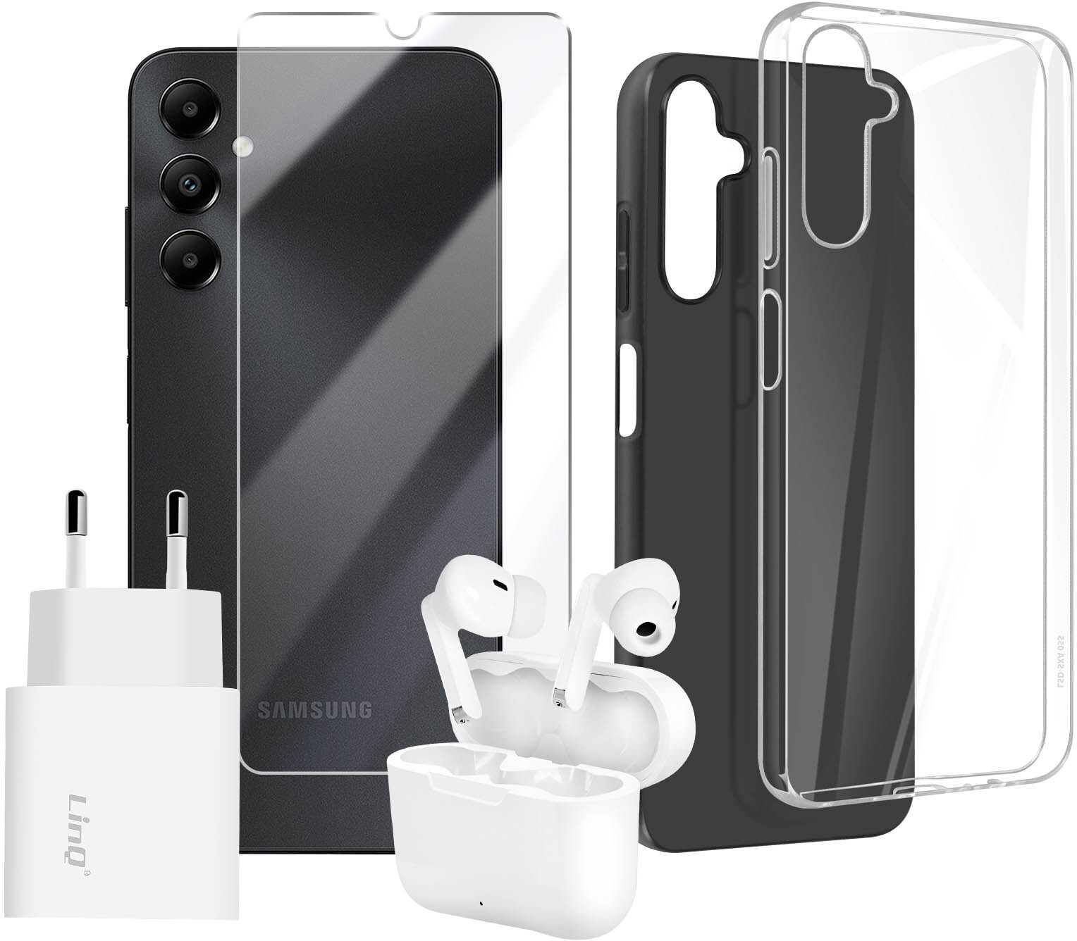 Smartphone Samsung Galaxy A05s 4G 64 Go nuevo 128 GB Negro. Pantalla LCD de 6,7 pulgadas. Cámara principal triple de 50 MP. Carcasas de silicona (Negro, transparente). Protector de pantalla de cristal templado. Cargador de red USB C de 20 W.Características y Puntos fuertes: Pack completo compuesto por un Samsung Galaxy A05s 4G 64 Go Negro, dos fundas de silicona, cristal templado, cargador USB C y auriculares inalámbricos.Samsung Galaxy A05s 4G 64 Go, un nuevo smartphone de altas prestaciones con procesador Qualcomm Snapdragon 680 4G y 4 GB de RAMPantalla LCD PLS de 6,7 pulgadas y triple cámara trasera de 50 MP para momentos inolvidablesDuración de la batería XXL y capacidad de 5000mAh