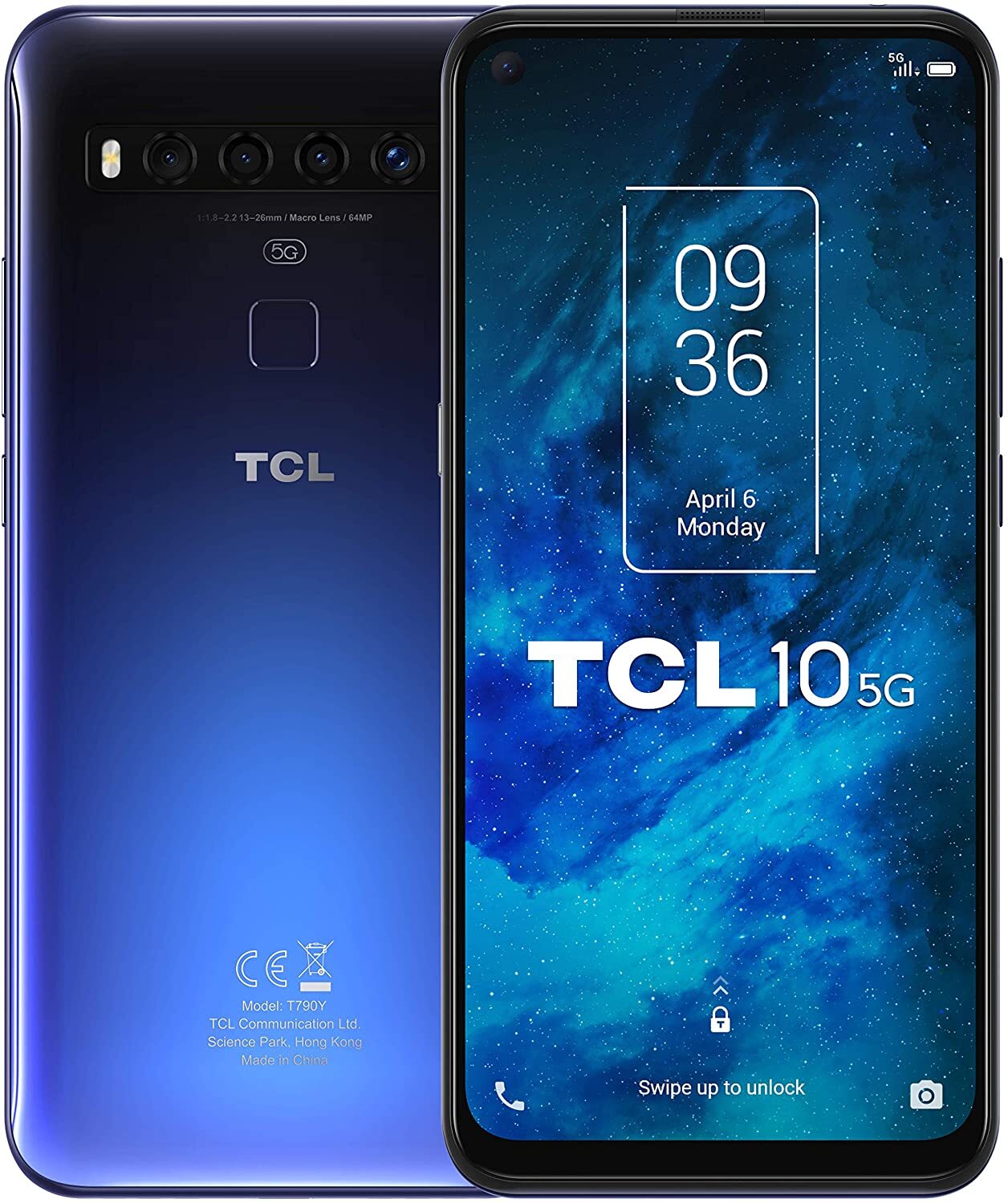 Conectividad 5G: gran velocidad, streaming ultrarrápido. El 5G es la nueva generación de datos más rápida, más estable y con una menor latencia. El nuevo TCL 10 5G ofrece una velocidad de conexión ultrarrápida para ver, jugar y descargar sin esperas. Las películas y series en alta definición se cargarán en segundos, los juegos no tendrán retardo para poder disfrutarlos en tiempo real, y las descargas tardarán segundos en completarse. NXTVISION, ahora con 5G. La pantalla del nuevo TCL 10 5G de 6.53” FHD+ cuenta con tecnología NXTVISION. Su procesador dedicado para imágenes y vídeos permite conseguir una remasterización a HDR en tiempo real. Además, ahora gracias a la conectividad 5G, incluso los vídeos en streaming tendrán contrastes mejorados, colores vibrantes y mayores detalles. El panel ocupa el 91% del frontal y alberga en su Dotch una cámara selfie de 16 MP. Cuádruple cámara con IA y un rendimiento excelente. El sensor principal de 64 MP de alta resolución es ideal para capturar fotografías más brillantes y llenas de detalles. Además, el TCL 10 5G dispone de un sensor para cada situación, un macro de 5MP, un gran angular de 8MP y un sensor de profundidad de 2 MP. El procesador Octacore Qualcomm® Snapdragon™ 765G, acompañado de 6 GB de RAM y potenciado por IA ofrece un excelente rendimiento tanto para juegos como para streaming de contenido. Sus 128GB de memoria interna, ampliables por tarjeta microSD, se complementan con la gran autonomía con una batería de 4500mAh, carga rápida Quick Charge 3.0 y carga reversible. El TCL 10 5G propone un acceso inteligente con reconocimiento facial o con lector de huellas en la parte trasera. Diseño icónico. El TCL 10 5G presenta un diseño único y reconocible, con una trasera simétrica construido en 3D para una fácil sujeción y un gradiente texturizado que atraerá todas las miradas. En el lateral tiene un botón dedicado a Google Assistant para activarlo de manera sencilla y rápida. IU TCL que ofrece interfaces vivas, de interacción intuitiva y características personalizables para una mayor facilidad de uso. La tecnología única Super Bluetooth del TCL 10 5G permite conectar hasta 4 altavoces o 4 auriculares a la vez, para un sonido envolvente. Escoge tu nuevo TCL 10 5G entre Mercury Grey y Twilight Blue.