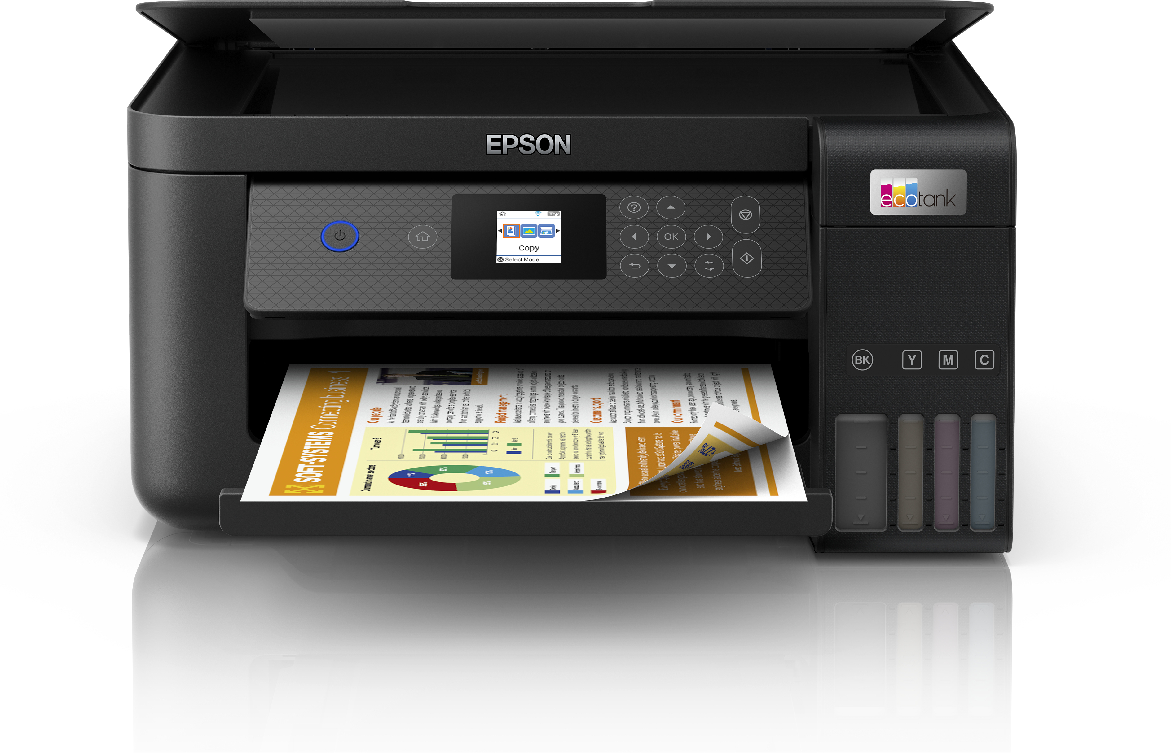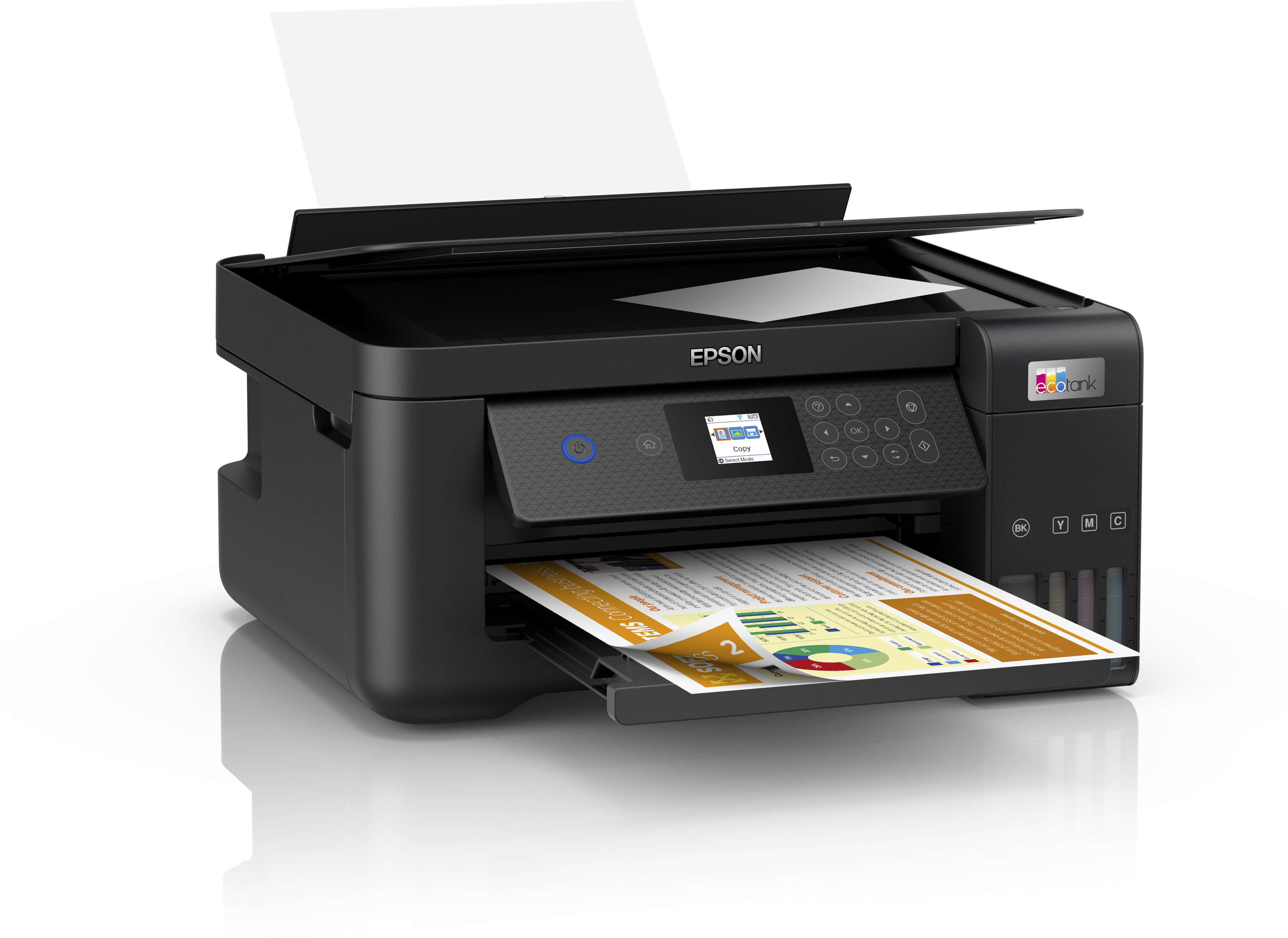 Di adiós a los cartuchos\nEcoTank proporciona una solución sin complicaciones para la impresión en casa: los depósitos de tinta de ultraalta capacidad están diseñados para recargas limpias con botellas que incluyen una función de bloqueo que solo permite rellenar cada depósito con el color correcto.\n\nNo dejes de ahorrar\nEsta impresora económica te permite ahorrar hasta un 90 % en costes de impresión1 y se suministra con una botella de tinta negra adicional para hasta 3 años de impresiones2. Un solo juego de botellas de tinta permite imprimir hasta 7500 páginas en negro y 6000 en color3, lo que equivale hasta a 72 cartuchos de tinta1\n\nAplicación Epson Smart Panel\nEsta aplicación te permite controlar tu impresora desde un dispositivo inteligente4. Puedes imprimir, copiar y escanear documentos y fotos, configurar, supervisar y solucionar problemas de tu impresora, así como dejar volar tu creatividad con una amplia gama de plantillas artísticas.\n\nRepletas de funciones\nCon una pantalla LCD a color de 3,7 cm, impresión automática a doble cara, impresión fotográfica sin bordes y velocidades de impresión de hasta 10,5 páginas por minuto5, puedes llevar a cabo una amplia variedad de tareas con facilidad a gran velocidad.\n\nFlexible y moderna\nSu diseño compacto y la conectividad Wi-Fi y Wi-Fi Direct completa, te permiten integrar fácilmente esta impresora con la configuración de tu hogar e imprimir desde móviles, tablets y ordenadores portátiles4.\n\nTecnología sin calor\nCon la Tecnología Sin Calor Micro Piezo puedes disfrutar de un consumo energético reducido y menos necesidad de piezas de repuesto. El cabezal de impresión también viene preinstalado, por lo que la configuración de tu impresora no supone ningún problema.