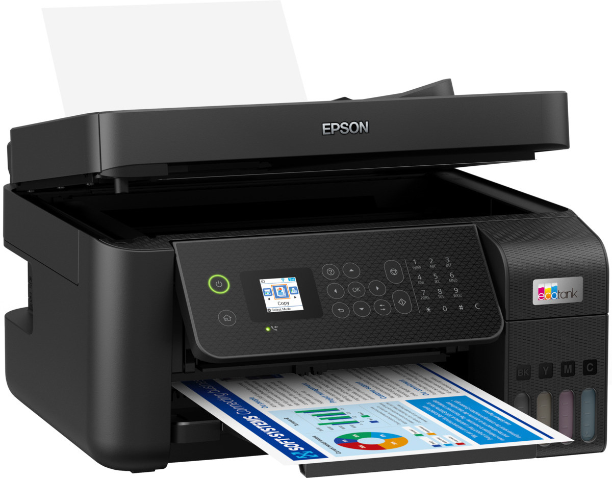 EcoTank proporciona una solución sin complicaciones para la impresión en casa: los depósitos de tinta de ultraalta capacidad están diseñados para recargas limpias con botellas que incluyen una función de bloqueo que solo permite rellenar cada depósito con el color correcto..Impresora multifunción A4 con ADF y Fax: Impresión, copia y escaneado Impresión a un coste extraordinariamente bajo: Ahorra hasta un 90 % en costes de impresión Hasta 72 cartuchos en un solo juego de tintas: Imprime hasta 4500 páginas en negro y 7500 en color Sistema de depósito de tinta sin problemas: Disfruta de recargas sin problemas con botellas con sistema de bloqueo y depósitos frontales Aplicación Epson Smart Panel: Configura, supervisa, imprime, escanea y mucho más, todo desde tu dispositivo inteligente*Especificaciones: .Color: Negro . | Marca: Epson . | Series: EcoTank ET-4800 . | Factor de forma: ?Todo en uno . | Tamaño de hoja: A4 . | Interfaz de hardware: USB, Ethernet . | Tipo de conectividad: ?Wi-Fi . | Dimensiones del producto: ?37.5 x 34.7 x 23.7 cm; 5 kilogramos . | Tecnología de impresión: Inyección de tinta . | Impresión de soportes físicos: Papel foto brillante . | Capacidad máxima de la hoja de entrada: 100 . | Número de modelo del producto: ?ET4800 . | Rendimiento del color: 6.500 páginas . | Pantalla LCD: Tipo . | Alimentación: 220 V, 240V