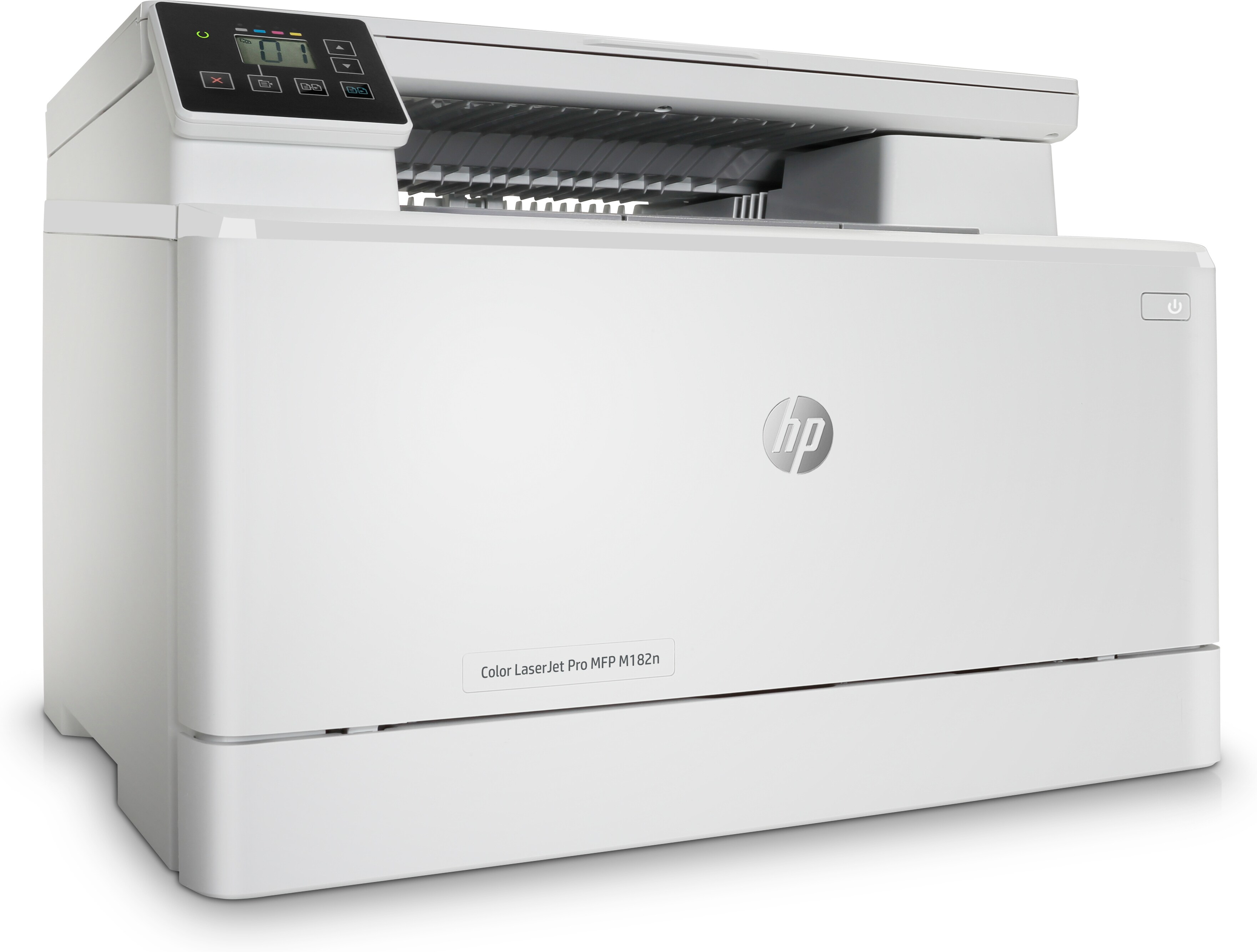 HP Color LaserJet Pro M182n. Tecnología de impresión: Laser, Impresión: Impresión a color, Resolución máxima: 600 x 600 DPI, Velocidad de impresión (color, calidad normal, A4/US Carta): 16 ppm. Copiando: Copia a color, Resolución máxima de copia: 600 x 600 DPI. Escaneando: Escaneo a color, Resolución óptica de escáner: 1200 x 1200 DPI. Tamaño máximo de papel ISO A-series: A4. Color del producto: Blanco