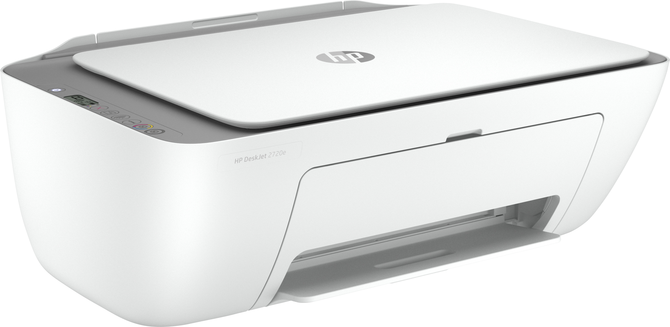 HP DeskJet 2720e. Tecnología de impresión: Inyección de tinta térmica, Impresión: Impresión a color, Resolución máxima: 4800 x 1200 DPI, Velocidad de impresión (color, calidad normal, A4/US Carta): 5,5 ppm. Copiando: Copia a color. Escaneando: Escaneo a color, Resolución óptica de escáner: 1200 x 1200 DPI. Funciones dúplex: Imprimir. Tamaño máximo de papel ISO A-series: A4. Wifi. Color del producto: Gris, Blanco