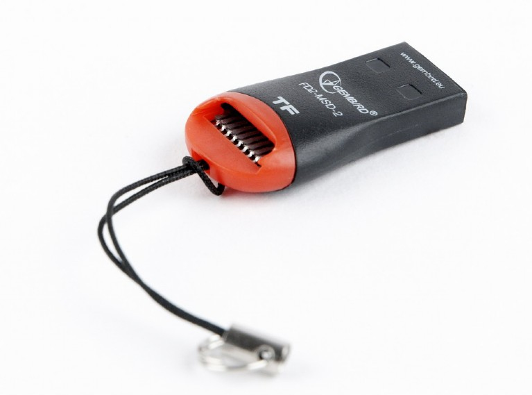 Gembird FD2-MSD-3. Tarjetas de memoria compatibles: MicroSD (TransFlash), SDHC, Color del producto: Negro, Rojo. Tipo de interfaz: USB 2.0. Ancho: 16 mm, Profundidad: 7 mm, Altura: 32 mm. Cantidad por paquete: 1 pieza(s), Ancho del paquete: 740 mm, Profundidad del paquete: 240 mm