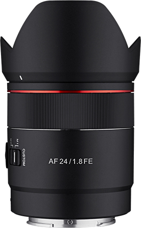 Samyang AF 24mm F1.8 FE. Componente para: SLR, Estructura de lente (elementos/grupos): 11/8, Tipo de lente: Objetivo ancho. Marcas de cámaras compatibles: Sony, Ampliación máxima: 0,21x. Color del producto: Negro, Tipo de montaje: Bayoneta. Diámetro: 6,5 cm, Tamaño de filtro: 5,8 cm, Longitud: 71,5 mm