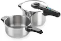 SET DE OLLA SUPER-RAPIDA MANGO , CUPERPO DE 6Lts. y DE 4 Lts, RECTAS, CON UNA TAPA. Triple dispositivo de Seguridad: Bloqueo automático de la tapa, Válvula de seguridad y Ventana lateral. Producto válido para todo tipo de cocinas: GAS, ELECTRICIDAD, HALOGENA, VITROCERAMICA e INDUCCION
