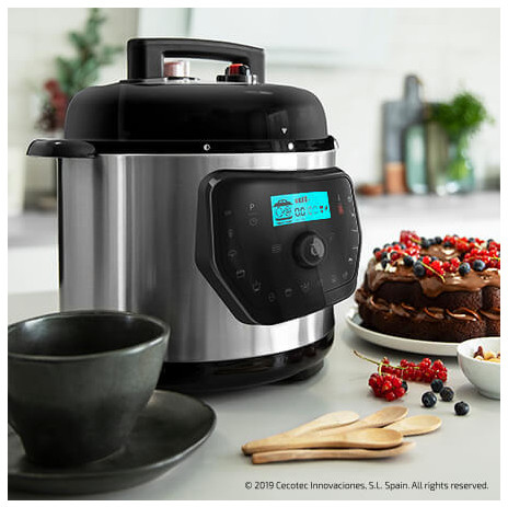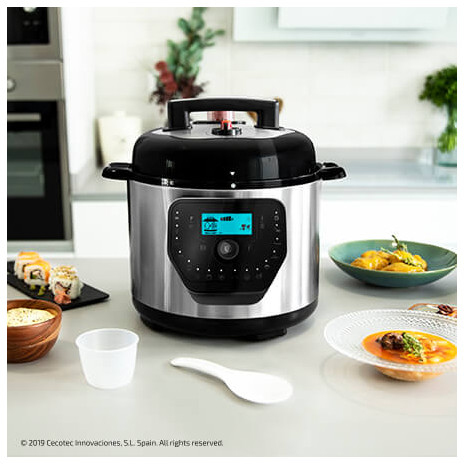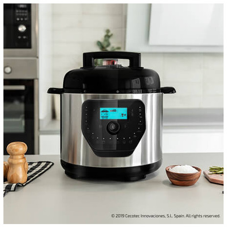Cecotec Olla GM H Deluxe. Capacidad: 6 L, La duración del temporizador: 24 min, Presión de seguridad: 90 kPa. Color del producto: Negro, Acero inoxidable, Tipo de visualizador: LED, Tipo de control: Giratorio, Tocar