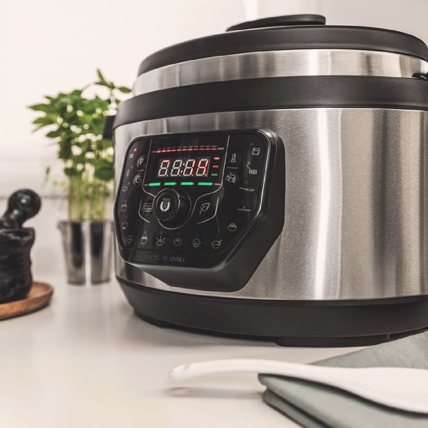 Robot de cocina multifunción que cocina por ti cualquier elaboración en tiempo récord..19 maneras diferentes de cocinar que te ayudarán a preparar entrantes, arroces, pasta, guisos, estofados, pescado, postres y todas las recetas que imagines..Forma ovalada para poder cocinar piezas enteras de carne y pescado..Disfruta de comidas con muchos invitados gracias a su gran capacidad de 8 litros..Innovadora tapa Advance que libera la presión de la forma más cómoda evitando salpicaduras..Cuenta con una cubeta Daikin extremadamente antiadherente que logra resultados óptimos en cualquier receta..Programable 24 horas para que disfrutes de la comida lista al llegar a casa..Modo Eco para ahorrar hasta un 50 % de energía durante su cocinado..Cocina turbo, a presión, al vapor, guiso, fuego lento, escalfar, confitar, fermentar, pan, postre, arroz, pasta, plancha, sofreír, freír y horno..Sistema inteligente GMCore que adapta la cocción de cada elaboración según la cantidad de alimentos, ya sea para una ración o doce raciones..Incluye un completo recetario y acceso a la comunidad social interactiva y a todas las recetas nuevas semanales de Cecotec.