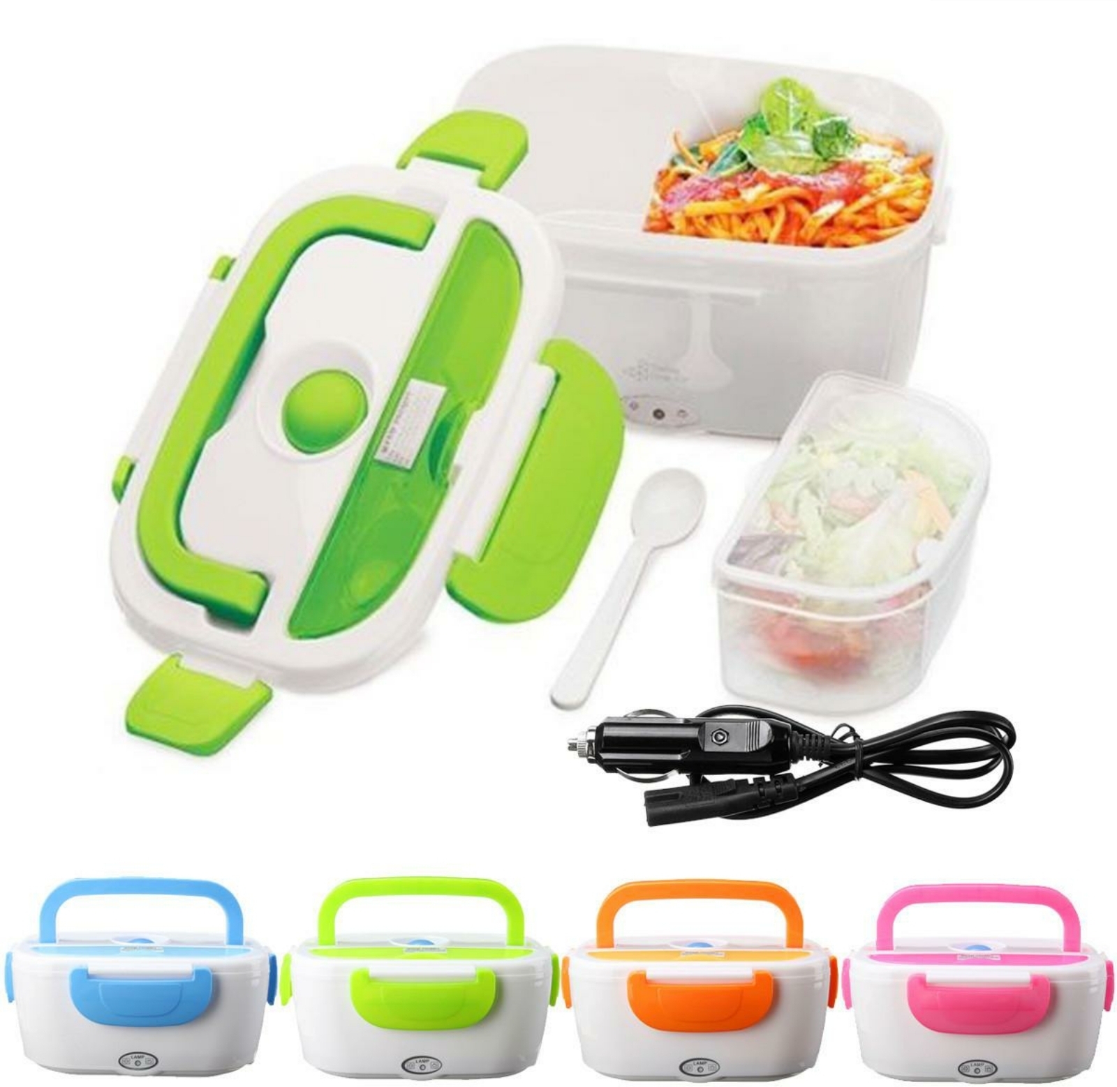 Calentador de contenedores de viaje eléctrico portátil, ideal para calentar sus comidas en la oficina, la escuela, el hogar, el trabajo, siempre mantenga el deseo de comer sus platos calientes cerca de usted 220V 1.2L.diferentes colores disponibles naranja, rosa, azul, verde manzana, especifique el color deseado al comprar