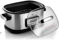 1250W. Cocina sana y equilibrada. Perfecta para 6/8 comensales. Tapa de vidrio termo-resistente. Valvula de escape de vapor. Recipiente extraible de alumiio con antiadherente. Apto para lavavajillas. Pantalla LCD con indicador de tiempo y temperatura. Programa diferente estidos de cocina: tradiciones, confitados, al vapor, baja temperataura, baja temperatura al vacio. Tiempo de calentamiento y temperatura ajustables. Facil de usar y limpirar. Accesorios: vaporera y parrilla. Inluye libro de 40 recetas.