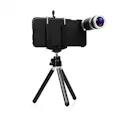 Convierte tu Iphone en una camara fotografica profesional con este completo kit. El set consiste en un objetivo zoom, acompa?ado de una gama de accesorios que literalmente transformaran tu Iphone 7 y 7 Plus. Con este teleobjetivo puedes multiplicar la distancia focal de la camara de tu smartphone hasta 8 veces. Llegaras mucho mas lejos de lo que jamas pensaste, pudiendo grabar o fotografiar con detalle a grandes distancias. El anillo de enfoque es suave y de gran precision, asegurando la total nitidez de la imagen (con una distancia minima de 3 metros, eso si, no es apto para fotografia macro). El pack contiene tambien un tripode y un soporte que te ayudaran a conseguir la fotografia perfecta, evitando temblores o desvios inoportunos. Para adaptar el movil, se incluyen tambien dos fundas: una para los modelos 7 y 7 Plus Para el cuidado de la lente del objetivo, el pack incorpora tambien una gamuza limpiadora que te lo dejara como nuevo. Y como sabemos que no es practico llevar el teleobjetivo incorporado si no vas a hacer fotos, incluimos tambien un lanyard para que puedas colgartelo al cuello, protegido de la forma mas comoda. Con este pack vas a llevar la camara de tu Iphone a limites insospechados. Te sorprendera lo lejos que puedes llegar, y las capturas que puedes lograr. Si te va la fotografia, no pierdas mas tiempo. ?Empieza a usar tu movil como una camara profesional! - Material: Fundas: ABS PESO 0,19 kg - Teleobjetivo - Tripode Objetivo: ABS y cristal Tripode y soporte: ABS y metal MEDIDAS DEL PRODUCTO - Objetivo: 7,5 x 3 x 3 cm - Tripode (plegado): 17,5 x - Soporte - 2 Fundas - Gamuza limpiadora