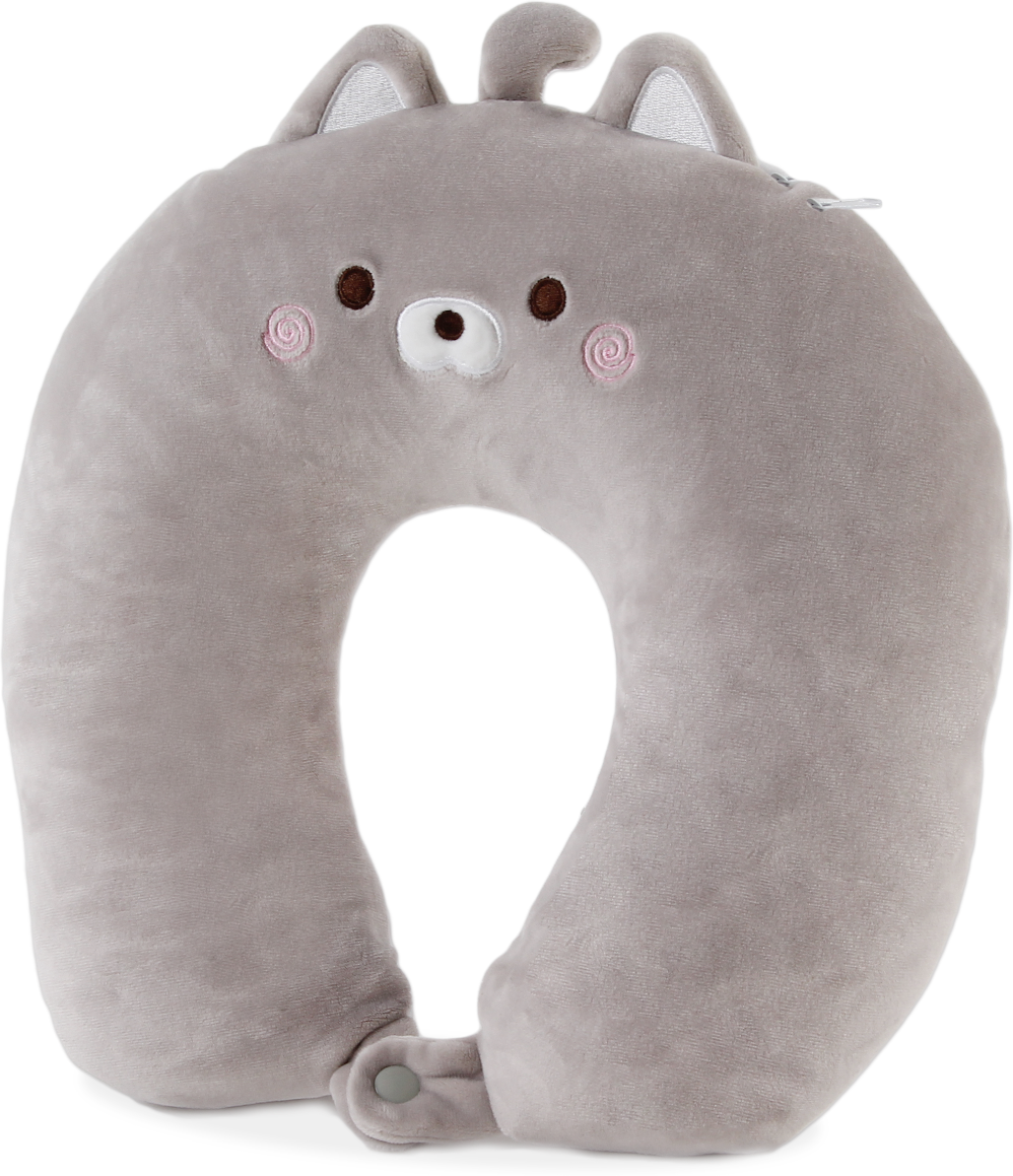 Original almohada para ayudar a descansar a tus cervicales, que para guardar se convierte en un gatito, el cual dará un toque especial en tu coche.
