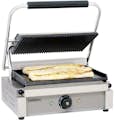 Parrilla Panini Placas ranuradas - lisas - • Aparato robusto de acero inoxidable • Placas de hierro fundido para una óptima distribución del calor • Placas superiores ranuradas, … Ver la presentación