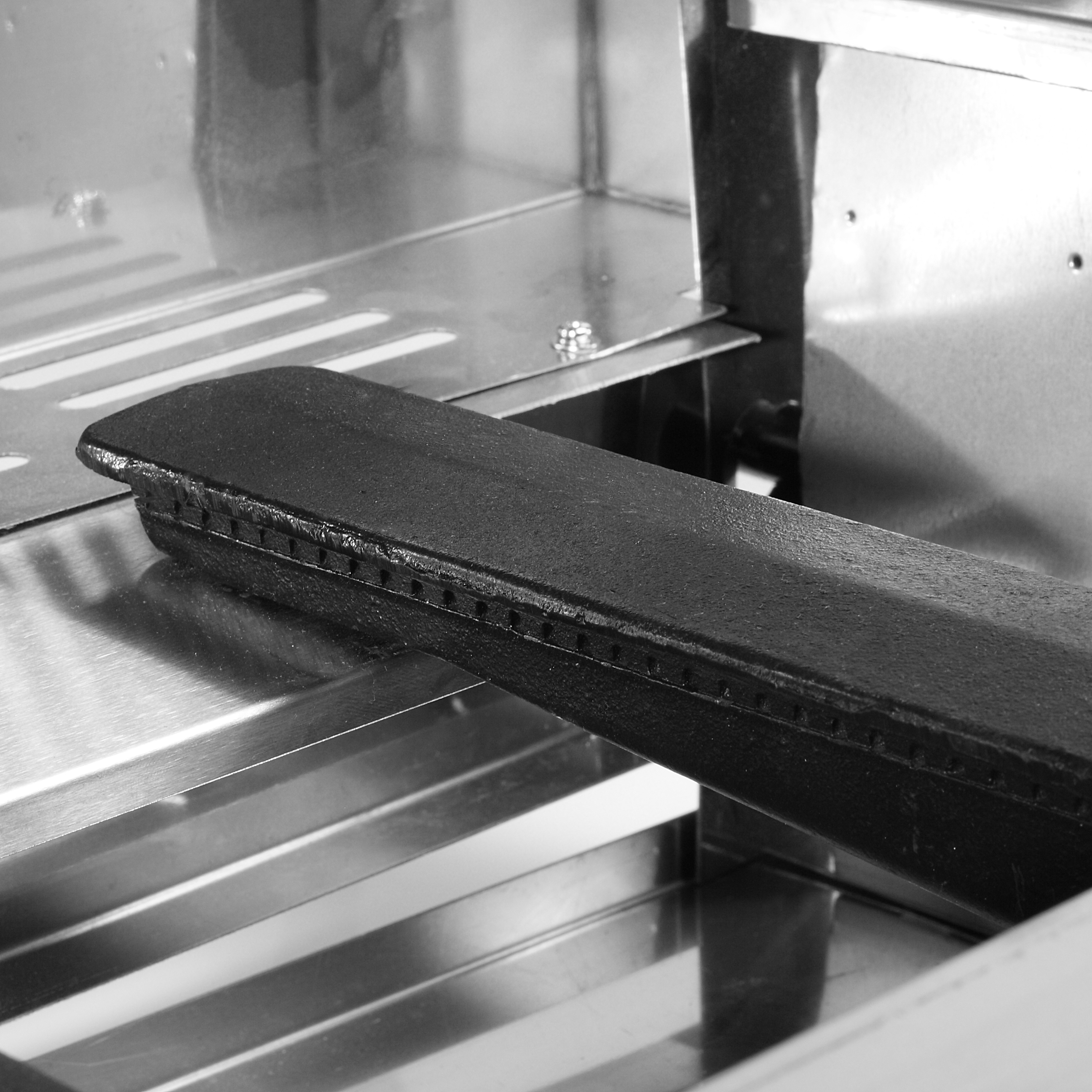 La parilla de gas BQ-6395 cuenta con una parrilla de hierro fundido esmaltado que resulta muy sencilla de limpiar. Los dos quemadores están fabricados en hierro fundido y tienen una capacidad de 2,4 kW cada uno de ellos. Además, el encendido piezo le permite encender la barbacoa sin necesidad de un encendedor.