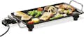 Table Grill Pro\nPlancha profesional de gran versatilidad, tamaño 26 x 46 cm, adecuada para carne, pescado, verduras, patatas, huevos, tortitas, etc. 2000W. Como está fabricada con aluminio fundido, es mucho más suave que otras planchas. Tiene una capa antiadherente de Teflón by Dupont que hace que los alimentos no se peguen nunca y que la plancha sea muy fácil de limpiar con papel de cocina o en el lavavajillas. Su perfecta distribución del calor garantiza una cocción uniforme. Ideal para usarla como barbacoa, Raclette (para fundir queso) o plancha japonesa Teppanyaki. Útil en la cocina, divertida en la mesa e ideal para comidas en el jardín o el balcón. Saludable y baja en grasa gracias a que no se requiere aceite ni mantequilla. Dispone de un termostato de precisión ajustable (hasta 215°C) y con indicador luminoso. Las asas no queman. También se puede usar para descongelar. ¡Incluye 6 espátulas y recetas!\n\nLa plancha se puede lavar fácilmente bajo el grifo, con un paño de cocina o incluso en el lavavajillas.