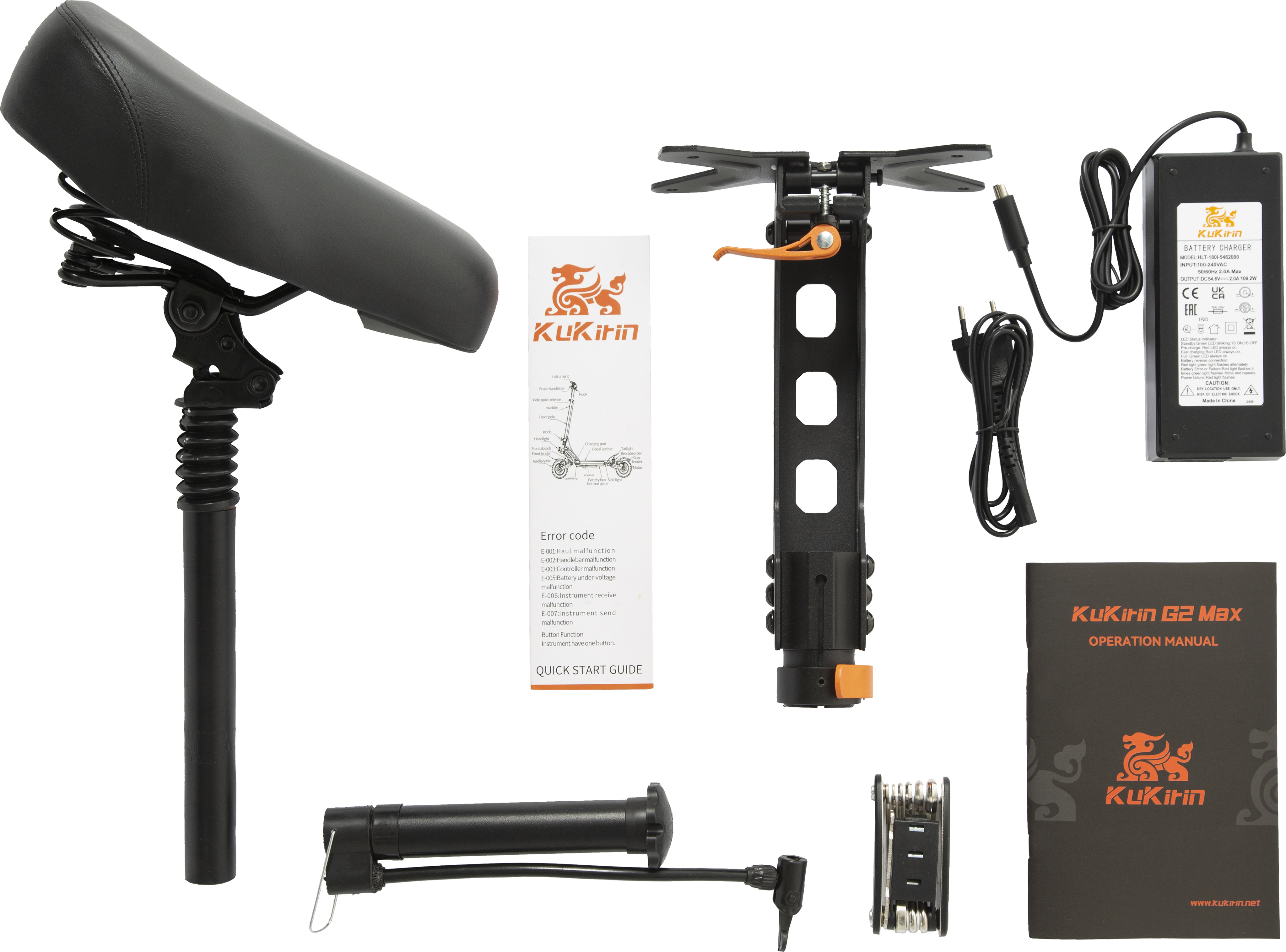 Batería superpotente.La KuKirin G2 Max utiliza una batería de litio de gran capacidad de 48 V y 20 Ah, y ofrece una autonomía de hasta 80 km, por lo que ya no tendrás que preocuparte por el kilometraje.. .Motor potente.Equipada con un potente motor de 1000 W, la KuKirin G2 Max puede subir pendientes de hasta 30 grados y es capaz de circular por carreteras más complicadas y con baches.. .Panel de control inteligente.Este panel de control muestra en tiempo real toda la información que necesita saber sobre la bicicleta: cambio de marchas, kilometraje, estado de la batería, velocidad, etc.. .Asiento desmontable.Incluye un asiento ajustable fabricado en cuero, y el acolchado grueso y ancho ofrece mayor comodidad cuando se inicia un viaje largo.. .Sistema de amortiguación eficaz.Los amortiguadores de muelles ajustados con precisión de la KuKirin G2 Max pueden amortiguar eficazmente los baches causados por terrenos difíciles, lo que te proporciona más diversión al conducir..