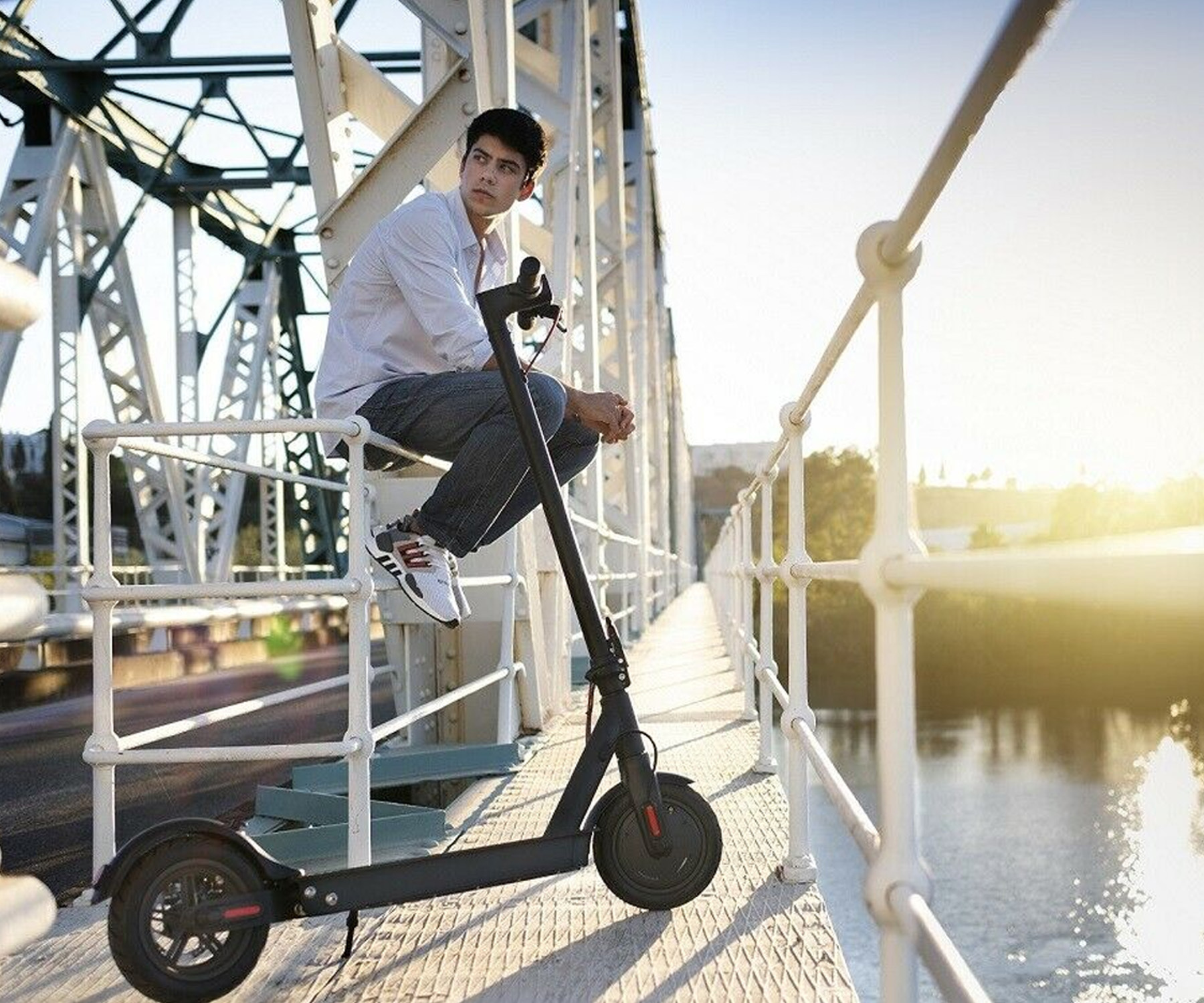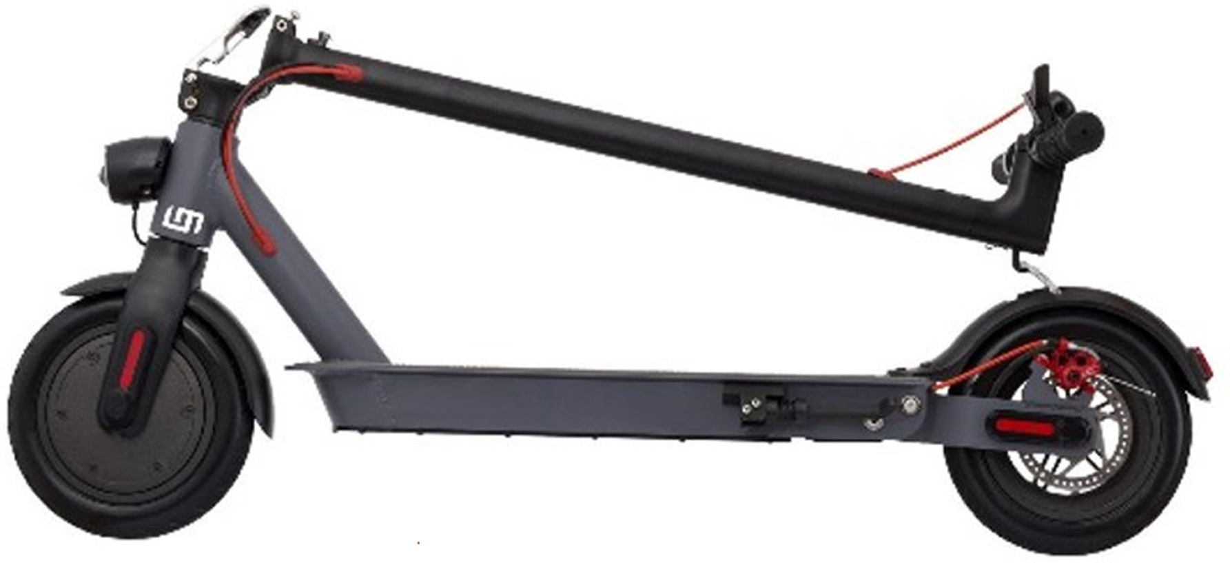 Patinete eléctrico motorizado UNIMADE L312UA (E9D) con diseño en color negro, velocidad máxima de hasta 25km/h, batería de duración de hasta 30km, diseño plegable portátil, con suspensión, ruedas de 8.5"" y frenos de disco, luces delanteras y traseras, motor 350W brushless.