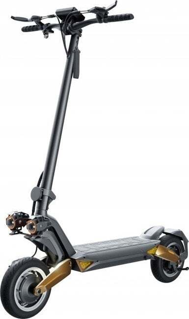 Ruptor R6 - Dos motores dominantes.¿Eres fan de la conducción rápida? Si es así, ¡tenemos justo lo que necesitas! Una auténtica bestia sobre dos ruedas. El rey indiscutible de la jungla urbana. En una palabra: el Ruptor R6..Un scooter no apto para todos.Y ciertamente no para los débiles de corazón. ¿Por qué no? Porque el Ruptor R6 tampoco es débil. No se deja intimidar por pilotos que midan 2 metros o pesen 150 kg. .Para dominar los exteriores.El Ruptor R6 no puede pasar desapercibido. Tanto si eres un entusiasta de la electromovilidad como si no. ¡Este depredador simplemente llama la atención! Sobre todo si eliges el color que mejor se adapte a tu estilo y gusto. ¿Un elegante negro mate, un misterioso cobre o un inconfundible verde brillante? Todo depende de la impresión que quieras dar a los envidiosos conductores de scooters ""normales""..Porque, ¿cómo se puede llamar si no a una máquina que tiene nada menos que dos motores (delantero y trasero), ¡cada uno con 800 vatios de potencia! Te preguntarás si un propulsor tan potente hace que el Ruptor sea difícil de domar. .La R6 está equipada con suspensión de horquilla para las ruedas delanteras y traseras. Esto significa que no tendrás que preocuparte por muñecas y rodillas doloridas, y que podrás superar pequeños obstáculos y baches sin demasiados problemas..El alma de un depredador.¿Eso es todo? Por supuesto que no. Para que la experiencia sea lo mejor posible, tienes que acordarte de las comodidades. Por eso hemos añadido algunas características para darle aún más empuje..Salvaje, pero responsable.Depredador no significa necesariamente peligroso. Queremos asegurarnos de que conquistar las carreteras sea seguro para tu salud..Nos hemos ocupado de ello instalando frenos de disco delante y detrás..Y cuando frenas, una luz de advertencia se enciende automáticamente para que los demás usuarios de la carretera sepan lo que estás a punto de hacer..Con el mismo fin, hemos instalado intermitentes para que todo el mundo conozca tus intenciones..¿Listo para conducir?.Lo mejor es tener confianza. Si quieres experimentar la potencia de 2 motores de 800 W, la seguridad de los frenos de disco, la innovadora aplicación y la construcción blindada, estás en el lugar adecuado. De hecho, estás un paso más cerca de mostrar tu carácter con un scooter eléctrico único. Cuando otros montan un Smart, ¡tú montas una Harley! ¿Listo para un paseo salvaje?