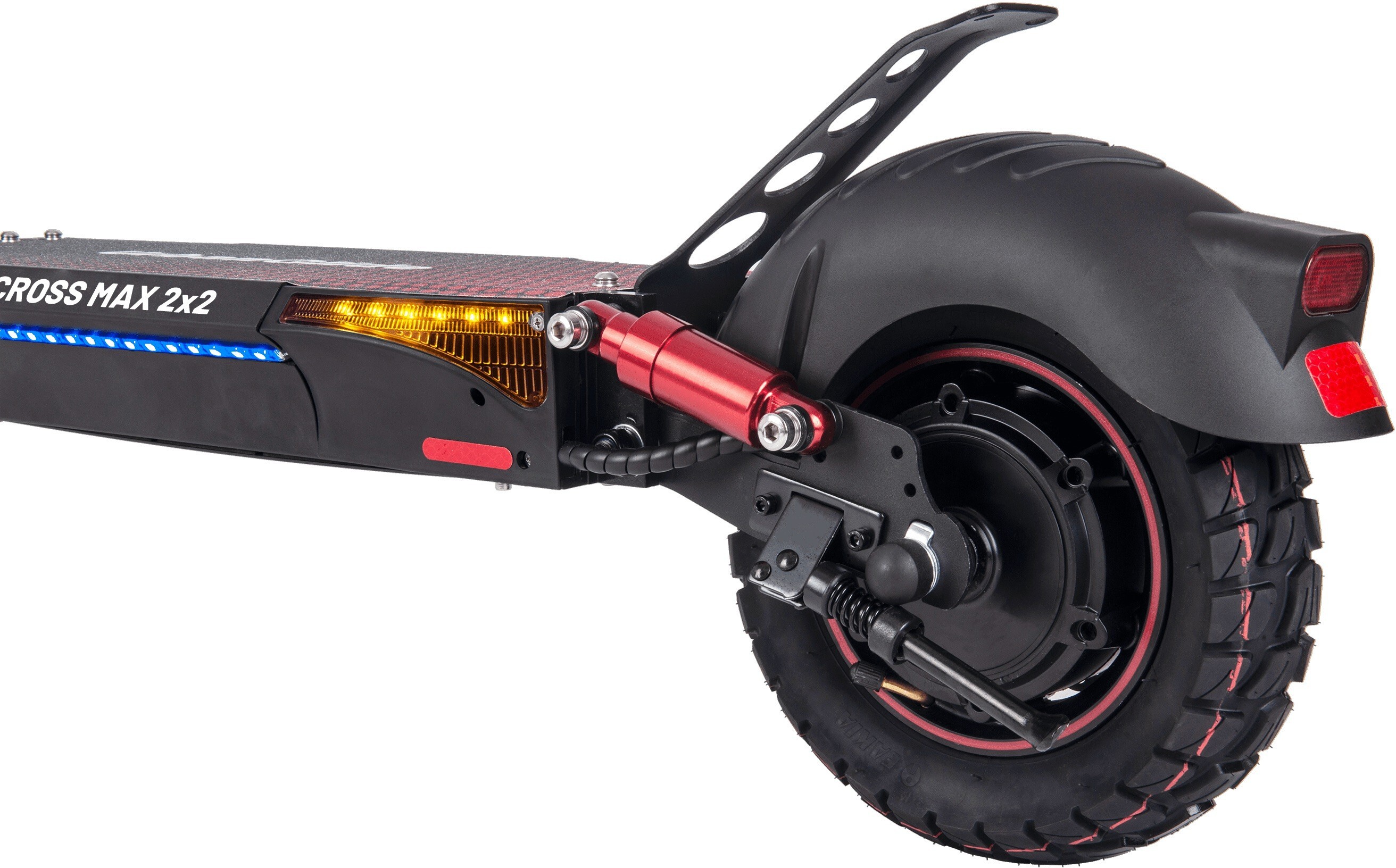 Pantalla.Su pantalla lcd te permite seguir los datos relativos a tu viaje en tiempo real: velocidad, distancia recorrida, nivel de batería y modo de conducción..Seguridad primero.En la ciudad, use los indicadores colocados en una plataforma extra ancha para advertir a otros usuarios..Sus dos frenos de disco proporcionan un frenado eficaz, independientemente de tu ritmo..Neumáticos.Su tracción a las 2 ruedas de 10 pulgadas indestructible se adapta tanto a la ciudad como a las carreteras rurales..Día y noche.Las tiras de luz debajo de la cama, así como un sistema led frontal doble, te permiten ser visible incluso en medio de la noche y viajar con total seguridad..Control.Para maximizar tu autonomía y gestionar la potencia de tu scooter, puedes activar o desactivar el motor dual simplemente pulsando el botón situado a la izquierda de tu manillar..Suspensiones.Su amplia plataforma y sus 6 suspensiones te ofrecen una comodidad y estabilidad únicas en cualquier tipo de terreno..Con un clic.Transporta fácilmente tu eCross max 2x2 gracias a su sencillo y seguro sistema de plegado..También pliegue hacia abajo las manijas para que su scooter ocupe el menor espacio posible.. .Alimentación 17,5Ah 48V.Tiempo de carga 5h.Peso del usuario 120Kg.Velocidad Máxima 25km/h.Autonomía de hasta 60Km.Pendiente máxima 20º.Dimensiones Packaging 120x24,5x52cm.Peso neto 27kg.Material Aluminio.Tamaño de las ruedas 10""/25cm.Voltaje 54,6V.Tamaño producto abierto 120x60,5x106cm.Tamaño producto plegado 121x24,55x43cm.Motor 800W x2.Batería 48v 17,5Ah