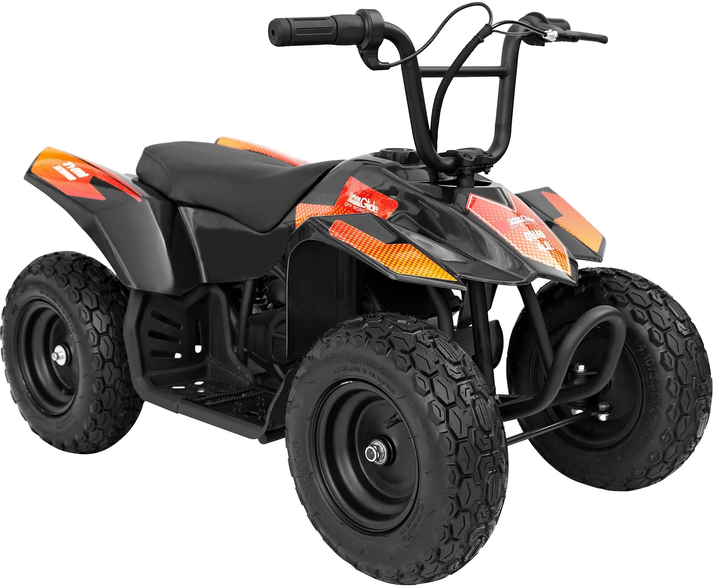 Con el quad eléctrico UrbanGlide diseñado especialmente para niños, disfruta de su comodidad gracias a sus grandes ruedas de 12 ""así como a su sistema de freno de disco trasero para una conducción segura. .Especificaciones técnicas:.Neumáticos extra anchos de 12"" (30cm) ) todo terreno con cámara de aire..Motor 250w - 24V. .Velocidad máxima 11 Km / h. .Freno de disco trasero. .Asiento acolchado. .Autonomía hasta 40 minutos en uso continuo (batería x2 12V6.5ah). .Peso usuario: 54Kg máx. .Dimensiones: 101.5 x 55 x 65cm .Peso neto 36Kg