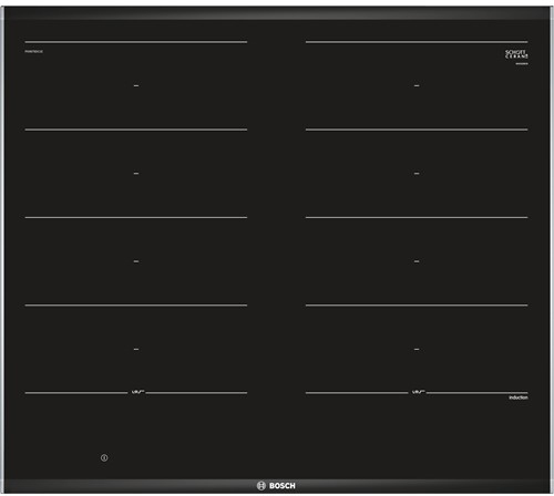 Bosch PXX675DC1E. Color del producto: Negro, Acero inoxidable, Tipo de instalación: Integrado, Tipo de quemador: Con placa de inducción. Certificación: AENOR, CE. Tipo de control: Tocar, Control de posición: Frente. Carga conectada (eléctrica): 7400 W, Voltaje de entrada AC: 220-240 V, Frecuencia de entrada AC: 50 - 60 Hz. Ancho: 606 mm, Profundidad: 527 mm, Altura: 51 mm