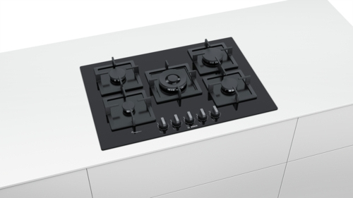 Bosch Serie 6 PPQ7A6B20. Color del producto: Negro, Tipo de instalación: Integrado, Tipo de quemador: Encimera de gas. Tipo de control: Giratorio, Control de posición: Parte superior delantera. Carga conectada (gas): 11500 W, Voltaje de entrada AC: 220-240 V, Frecuencia de entrada AC: 50 - 60 Hz. Ancho: 752 mm, Profundidad: 520 mm, Altura: 45 mm