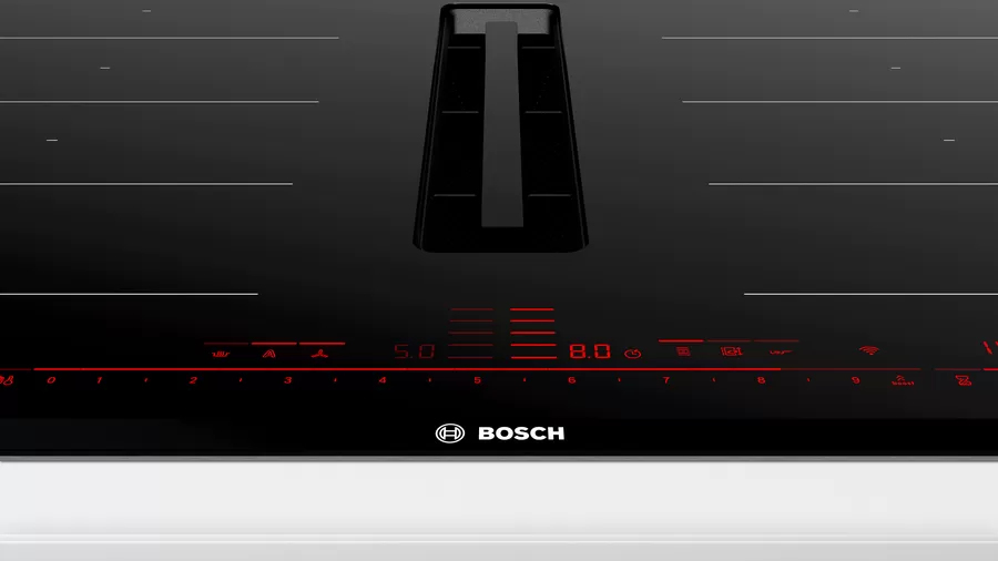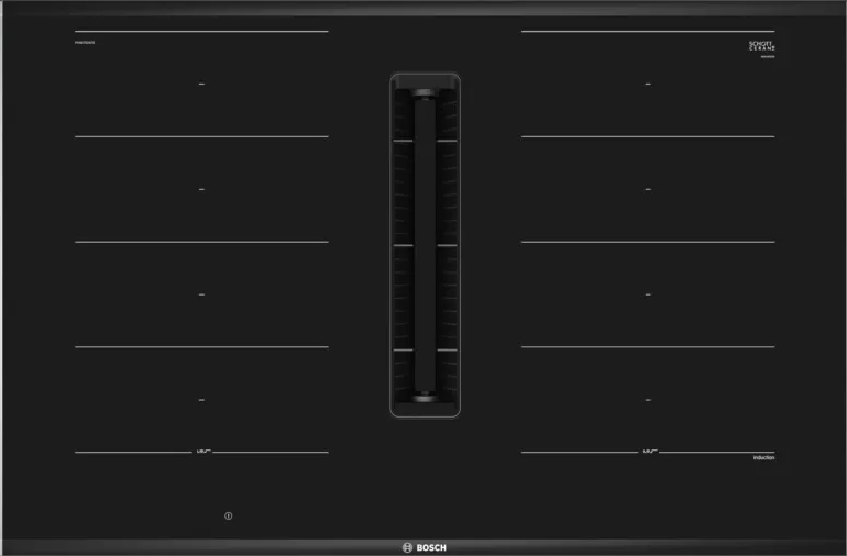 Bosch Serie 8 PXX875D67E. Color del producto: Negro, Tipo de instalación: Integrado, Anchura de los quemadores: 80 cm. Zona de cocción a fuego lento: 2200 W, Zona de cocción media: 3300 W. Tipo de control: Tocar, Control de posición: Frente, Tipo de reloj: Electrónico. Tipo de extracción: Recirculación, Máxima capacidad de extracción: 500 m³/h, Nivel de ruido: 69 dB. Carga conectada (eléctrica): 7400 W, Voltaje de entrada AC: 220-240 V, Frecuencia de entrada AC: 50-60 Hz