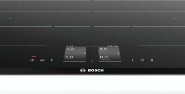 Bosch PXY875KW1E, Serie 8. Diseño: Integrado, Tipo de quemador: Con placa de inducción, Tipo de superficie superior: Vidrio y cerámica. Tipo de control: Tocar, Tipo de temporizador: Digital, Control de posición: Parte superior delantera. Carga conectada (eléctrica): 7400 W, Voltaje de entrada AC: 220 - 240 V, Frecuencia de entrada AC: 50 - 60 Hz. Ancho: 816 mm, Profundidad: 527 mm, Altura: 51 mm