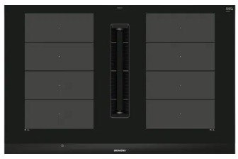 Siemens iQ700 EX875LX57E. Color del producto: Negro, Tipo de instalación: Integrado, Anchura de los quemadores: 80 cm. Certificación: CE, VDE. Tipo de control: Tocar, Control de posición: Front / Top front, Tipo de temporizador: Digital. Tipo de extracción: Recirculación, Máxima capacidad de extracción: 622 m³/h, Nivel de ruido: 69 dB. Carga conectada (eléctrica): 7400 W, Voltaje de entrada AC: 220-240 V, Frecuencia de entrada AC: 50-60 Hz