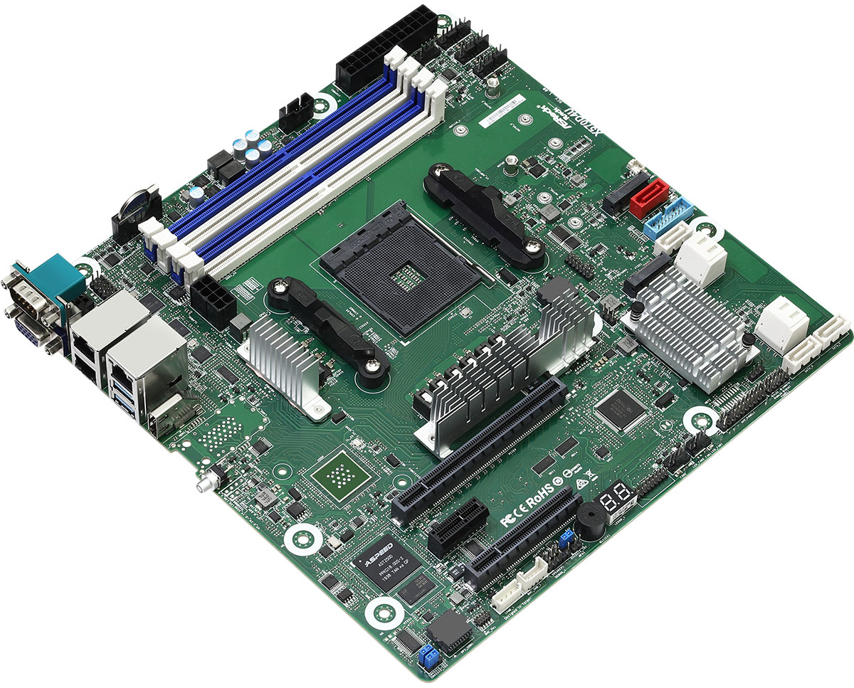 Asrock X570D4U. Socket de procesador: Zócalo AM4, Sockets de procesador soportados: Zócalo AM4. tipos de memoria compatibles: DDR4-SDRAM, Memoria interna máxima: 32 GB, Tipo de ranuras de memoria: DIMM. Interfaces de disco de almacenamiento soportados: M.2, SATA III, Niveles RAID: 0, 1, 10. Graphics chipset: ASPEED, Adaptador gráfico: AST2500. Tipo de interfaz ethernet: Gigabit Ethernet, Controlador LAN: Intel I210, Realtek RTL8211E