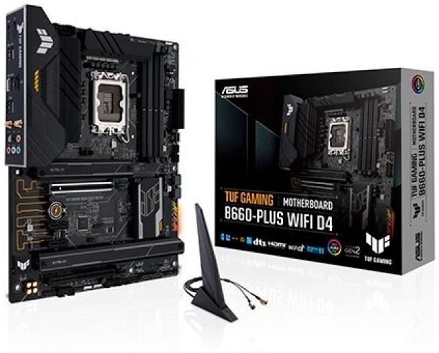 La TUF Gaming B660-PLUS WIFI D4 destila los elementos esenciales de la última plataforma de Intel y los combina con funciones específicas de gaming y una durabilidad comprobada. Diseñadas con componentes de grado militar, soluciones de alimentación mejoradas y opciones de refrigeración completas, estas placas base ofrecen un rendimiento gaming sólido y una estabilidad inquebrantable..Placa base Intel B660 (LGA 1700) ATX con ranura PCIe 5.0, tres ranuras M.2 PCIe 4.0, 10+1 DrMOS, Intel® 2.5Gb Ethernet, DisplayPort, HDMI, USB 3.2 Gen. 2 de tipo C® frontal, Aura Sync,Zócalo Intel LGA 1700: Compatible con los procesadores Intel de 12.ª Gen.,Solución de alimentación mejorada: 10+1 etapas de alimentación DrMOS, PCB de seis capas, 8+4 tomas ProCool, componentes TUF de grado militar y VRM Digi+ para ofrecer la máxima durabilidad.,Refrigeración integral: Disipador VRM ampliado, Stack Cool 3+, disipadores M.2, disipador PCH, conectores de ventilación híbridos y Fan Xpert 4.,CPU Intel® Socket LGA1700 para procesadores Intel® Core ™, Pentium® Gold y Celeron® de 12.ª generación Admite la tecnología Intel® Turbo Boost 2.0 y la tecnología Intel® Turbo Boost Max 3.0 ** * Consulte www.asus.com para obtener una lista de compatibilidad con CPU. ** La compatibilidad con la tecnología Intel® Turbo Boost Max 3.0 depende de los tipos de CPU.Especificaciones: .Marca: ?ASUS . | Series: ?TUF GAMING B660-PLUS WIFI D4 . | Fabricante: ?Asus . | Toma del procesador: ?LGA 1700 . | Dimensiones del producto: ?30.5 x 24.4 x 4.3 cm; 1.1 kilogramos . | Memoria máxima compatible: ?128 GB . | Número de modelo del producto: ?ASUCMPB66TUF1 . | Factor de forma: ATX . | Chipset: Intel B660 . | tipos de memoria compatibles: DDR4-SDRAM . | Tipo de ranuras de memoria: DIMM . | Canales de memoria: Dual-channel . | Tipos de unidades de almacenamiento admitidas: HDD & SSD . | Interfaces de disco de almacenamiento soportados: M.2,SATA . | Conector USB: USB tipo A, USB Tipo C . | Estándar Wi-Fi: Wi-Fi 6 (802.11ax) . | Cables incluidos: SATA