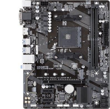 Gigabyte GA-A320M-S2H. Fabricante de procesador: AMD, Socket de procesador: Zócalo AM4, Procesador compatible: AMD Ryzen. tipos de memoria compatibles: DDR4-SDRAM, Tipo de ranuras de memoria: DIMM, Velocidades de reloj de memoria soportadas: 2133,2400,2667,2933,3200 MHz. Niveles RAID: 0, 1, 10. Componente para: PC, Factor de forma: Micro ATX, Familia del chipset: AMD. Tipos de BIOS: UEFI AMI, BIOS, tamaño de memoria: 16 MB/s