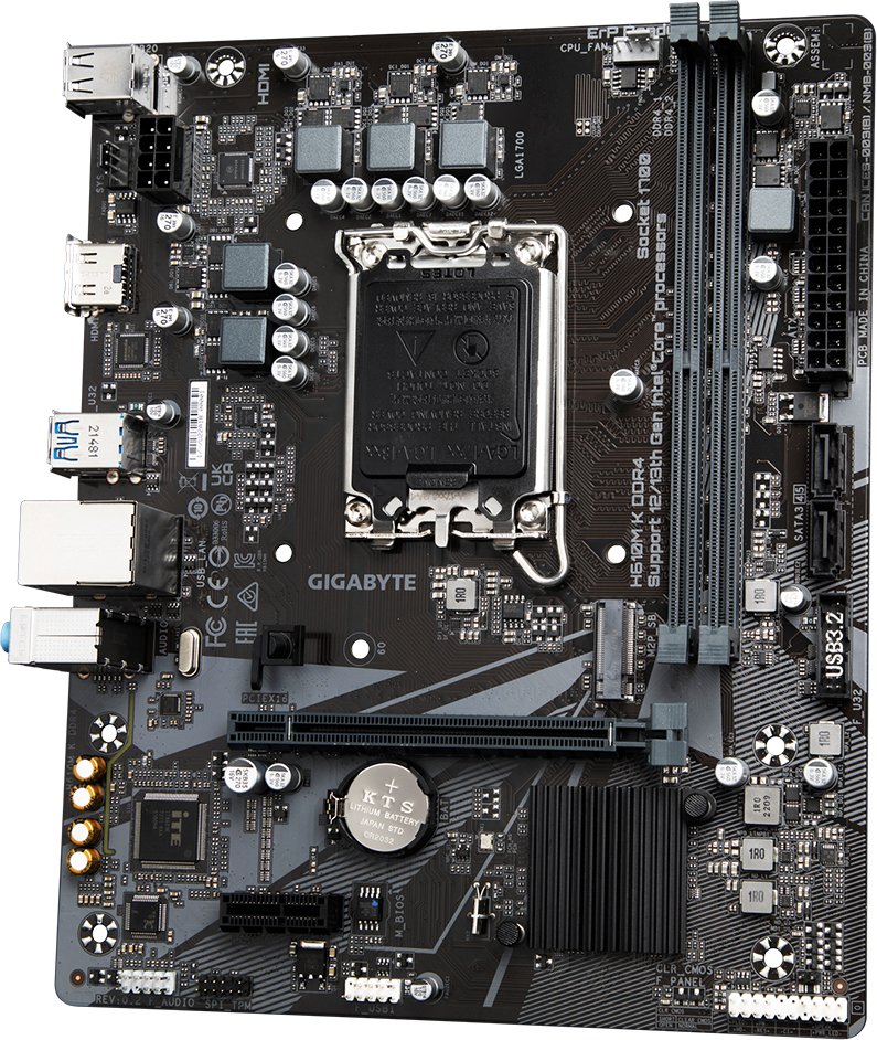 Gigabyte H610M K DDR4 1.0. Fabricante de procesador: Intel, Socket de procesador: LGA 1700, Procesador compatible: Intel® Celeron®, Intel® Core™ i3, Intel® Core™ i7, Intel® Core™ i9, Intel® Pentium® Gold. tipos de memoria compatibles: DDR4-SDRAM, Memoria interna máxima: 64 GB, Tipo de ranuras de memoria: DIMM. Interfaces de disco de almacenamiento soportados: M.2, PCI Express 3.0, SATA. Graphics chipset: Intel, Adaptador gráfico: HD Graphics, Máxima resolución: 4096 x 2160 Pixeles. Tipo de interfaz ethernet: Gigabit Ethernet