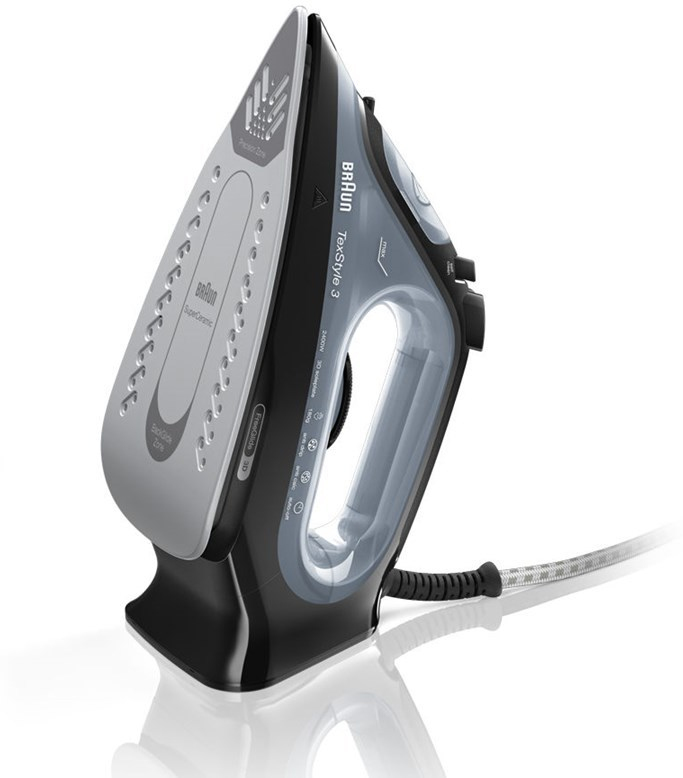 Braun TexStyle 3 SI 3055. Tipo: Plancha vapor-seco, Material de la suela/recubrimiento: Suela de CeramicGlide, Longitud del cable: 2 m. Potencia: 2400 W, Voltaje de entrada AC: 220 - 240 V, Frecuencia de entrada AC: 50 - 60 Hz