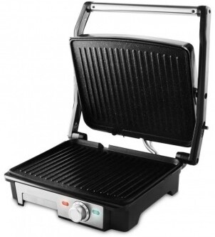 Parrila electrica de grill de Contacto con revestimiento de marmol de piedra y 2200W de potencia, placas antiadherentes de 29x23cm, y una apertura de 180?, Regulador Temperatura, y con Bandeja Recoge Grasas. Las asas son de toque frio, no se calientan mientras esta en funcionamiento.