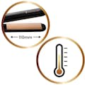 Placas recubiertas de cerámica avanzada - Cuidado de la luminosidad y el brillo - Placas flotantes XL de 110 mm - Temperatura variable 150 y 230 °C - Se calienta en 15 segundos - Dial de ajuste - Bloqueo de placas - Apagado automático después de 60 min - Fácil de manejar - Bolsa de almacenamiento