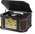 Technaxx TX-103. Tipo: Tocadiscos de tracción por correa, Funcionamiento: Semiautomático, Color del producto: Negro, Oro. Versión de Bluetooth: 2.0+EDR, Perfiles de Bluetooth: A2DP,HFP, alcance Bluetooth: 8 m. Potencia estimada RMS: 2,5 W, Obstrucción: 4 O, Rango de frecuencia: 60 - 16000 Hz. Tipo de fuente de alimentación: Corriente alterna, Consumo energético: 18 W, Frecuencia de adaptador AC: 50 Hz. Ancho: 335 mm, Profundidad: 445 mm, Altura: 235 mm