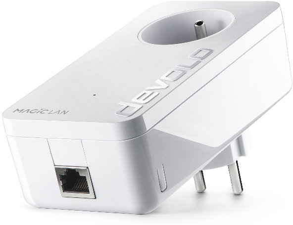 Devolo Magic 2 LAN. Rango máximo de transferencia de datos: 2400 Mbit/s, Estándares de red: IEEE 802.3,IEEE 802.3ab,IEEE 802.3az,IEEE 802.3u,IEEE 802.3x, Tipo de interfaz Ethernet LAN: Gigabit Ethernet. Consumo energético: 2,8 W, Consumo de energía (inactivo): 0,7 W, Voltaje de entrada AC: 196 - 250 V. Color del producto: Blanco, Certificación: CE. Sistemas operativos móviles soportados: Android 5.0,Android 5.1,Android 6.0,Android 7.1,Android 7.1.2,iOS 10.0,iOS 11.0,iOS 9.0,iOS.... Ancho: 66 mm, Profundidad: 42 mm, Altura: 130 mm
