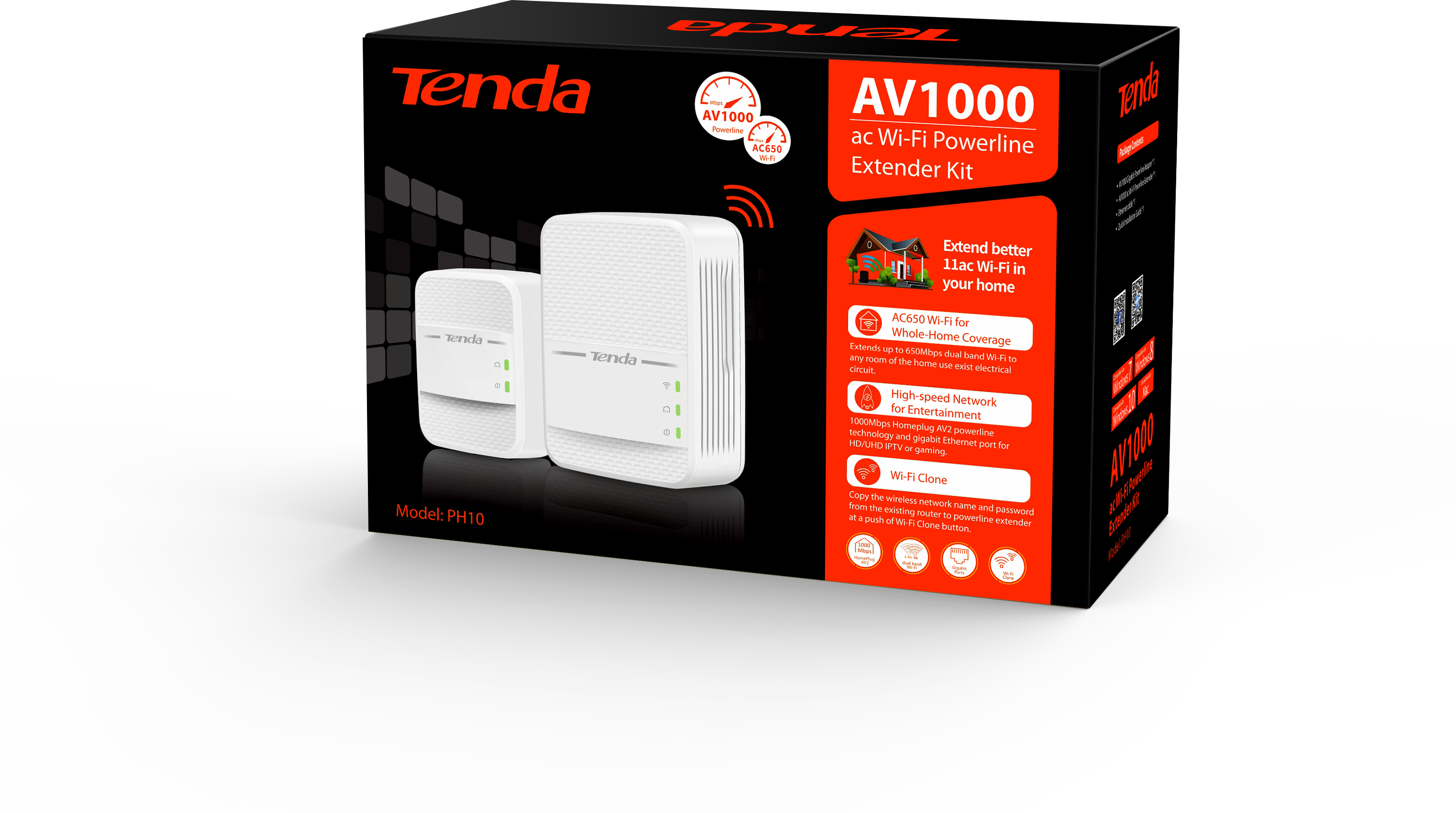 Tenda PH10. Estándares de red: IEEE 802.11a,IEEE 802.11ac,IEEE 802.11b,IEEE 802.11g,IEEE 802.11n,IEEE 802.3,IEEE 802.3ab,IEEE..., Ethernet LAN, velocidad de transferencia de datos: 10,100,1000 Mbit/s, Wi-Fi estándares: 802.11a,Wi-Fi 5 (802.11ac),802.11b,802.11g,Wi-Fi 4 (802.11n). Voltaje de entrada AC: 100-240 V, Frecuencia de entrada AC: 50 - 60 Hz. Color del producto: Blanco, Indicadores LED: Poder, WLAN, Certificación: CE,FCC