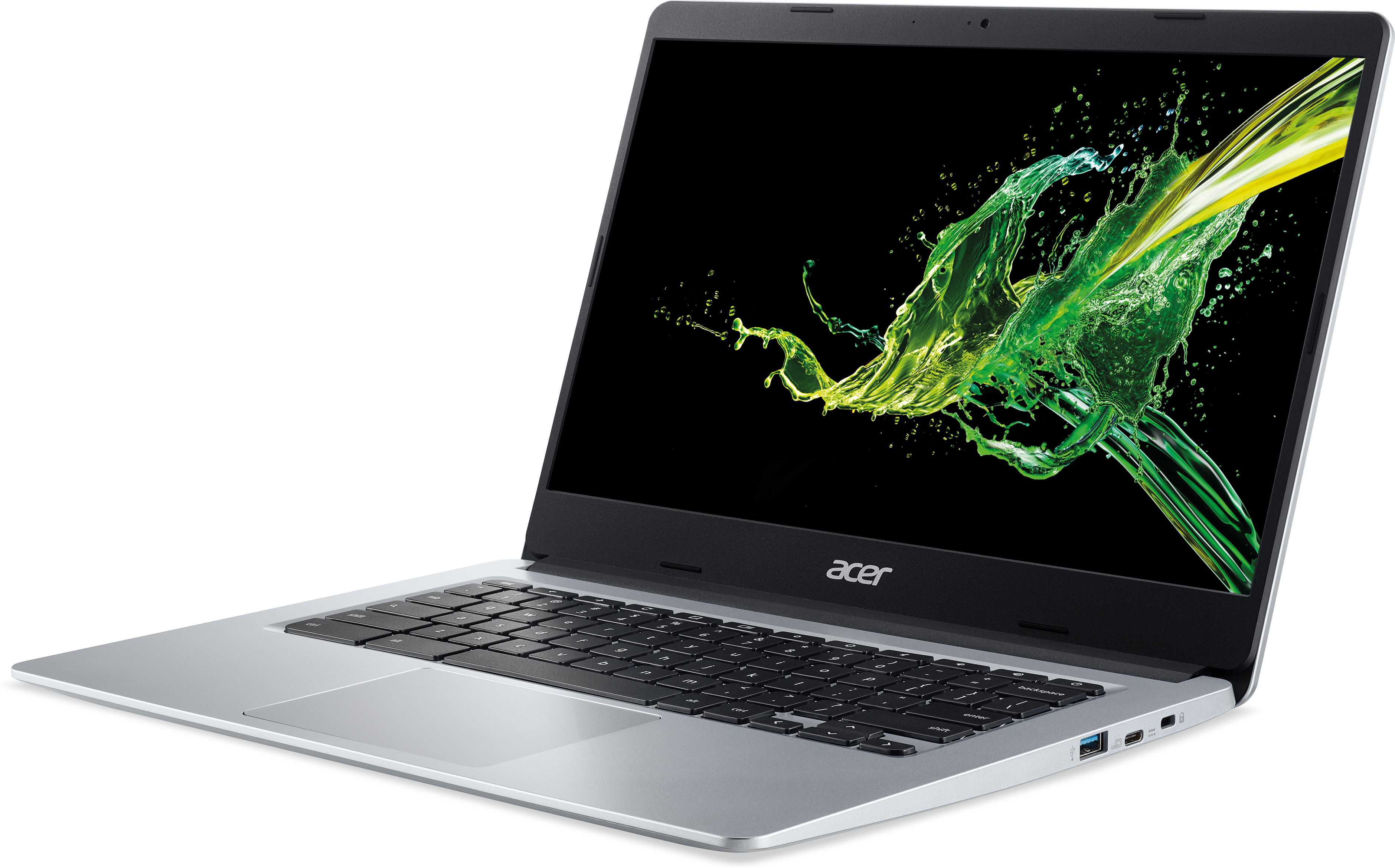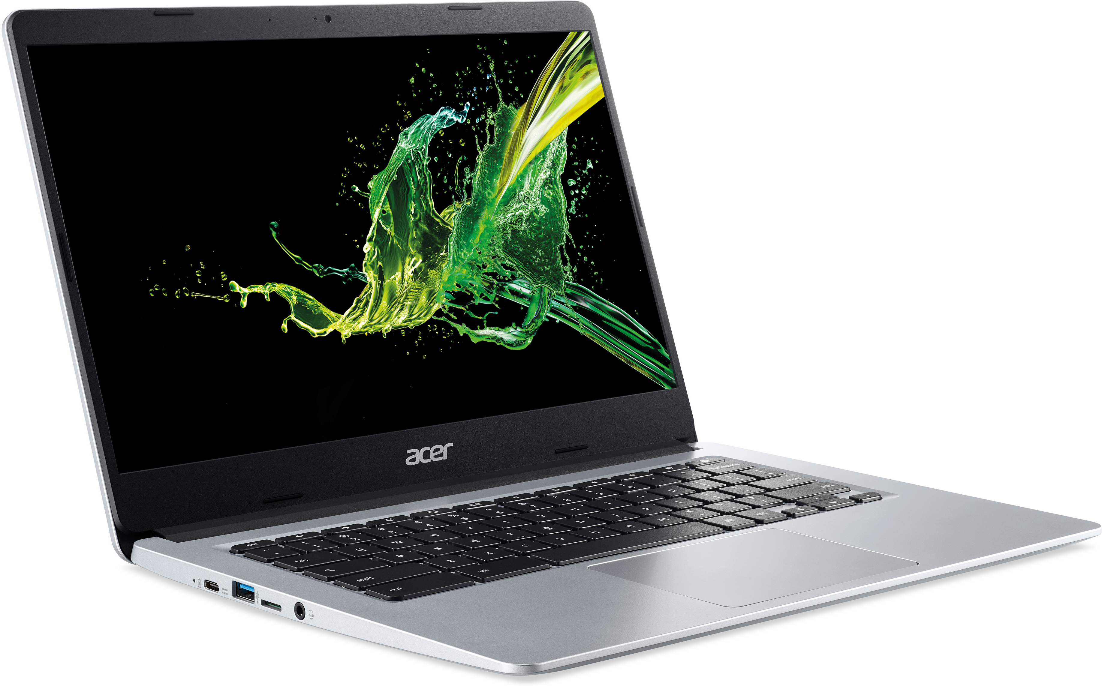 Acer Chromebook CB314-1H-C1WK. Tipo de producto: Chromebook, Factor de forma: Concha. Familia de procesador: Intel® Celeron® N, Modelo del procesador: N4120, Frecuencia del procesador: 1,1 GHz. Diagonal de la pantalla: 35,6 cm (14""), Tipo HD: Full HD, Resolución de la pantalla: 1920 x 1080 Pixeles. Memoria interna: 4 GB, Tipo de memoria interna: LPDDR4-SDRAM. Capacidad total de almacenaje: 64 GB, Unidad de almacenamiento: eMMC. Modelo de adaptador gráfico incorporado: Intel® UHD Graphics 600. Sistema operativo instalado: Chrome OS. Color del producto: Plata