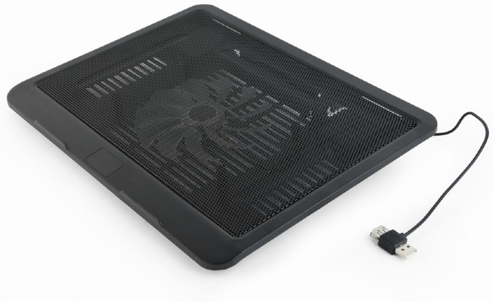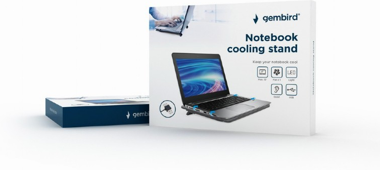Gembird NBS-1F15-04. Tipo de producto: Soporte para ordenador portátil, Color del producto: Negro, Compatibilidad máxima de tamaño con pantallas de ordenadores portátiles: 38,1 cm (15""). Diámetro de ventilador: 12 cm. Intensidad nominal: 0,4 A, Voltaje de entrada: 5 V. Ancho: 330 mm, Profundidad: 250 mm, Altura: 25 mm. Tipo de embalaje: Caja, Ancho del paquete: 450 mm, Profundidad del paquete: 350 mm